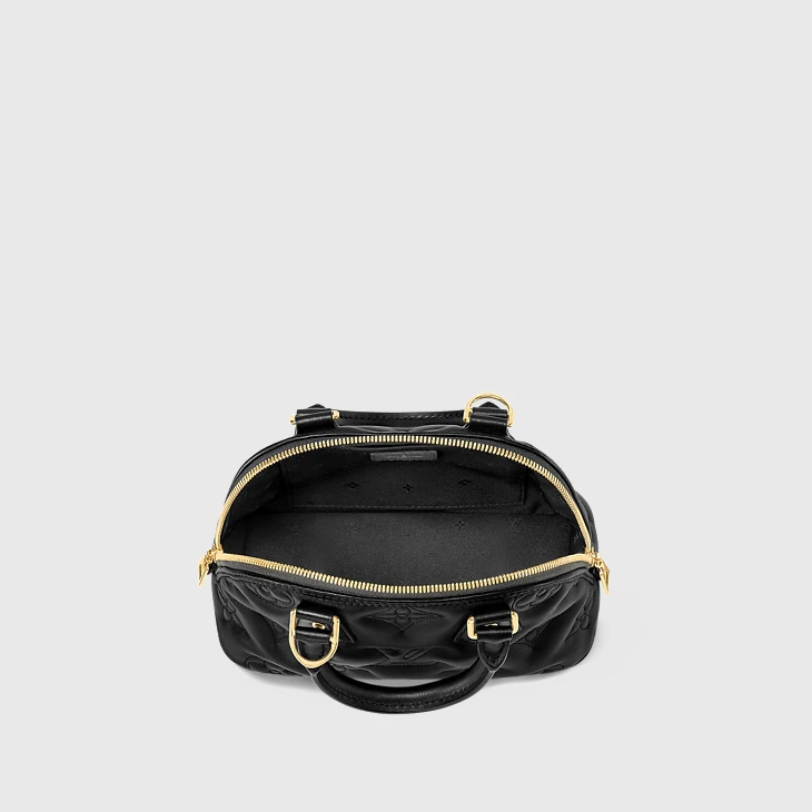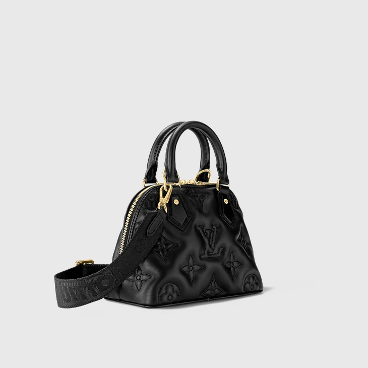Made from quilted calfskin embroidered with the Monogram motif, the Alma BB handbag is the direct descendant of the Art Deco original from the 1930s. Crafted details like the two rolled-leather top handles complement the puffy leather. Equipped with a removable and adjustable strap, this small bag is perfect for cross-body wear in addition to hand carry.