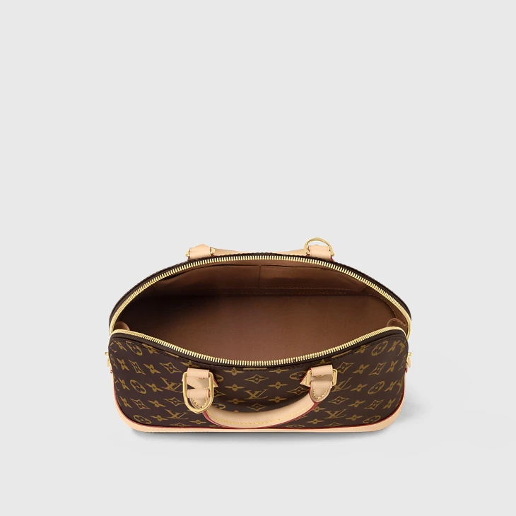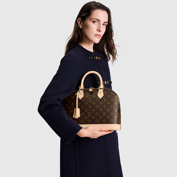 A timeless House icon, the Alma PM handbag is ideal for every day. Its structured lines recall the Art Deco original, introduced in 1934 and named for the Alma Bridge in Paris. Crafted from Monogram canvas, with hand-stitched Toron handles, natural cowhide trim and high-shine golden hardware, this signature model always looks elegant, carried by hand or on the elbow.
