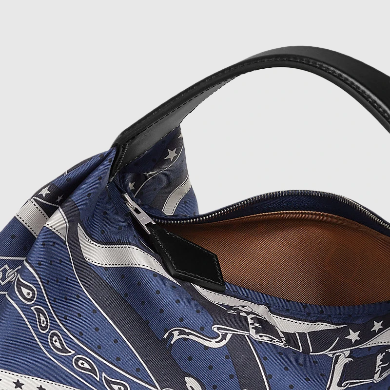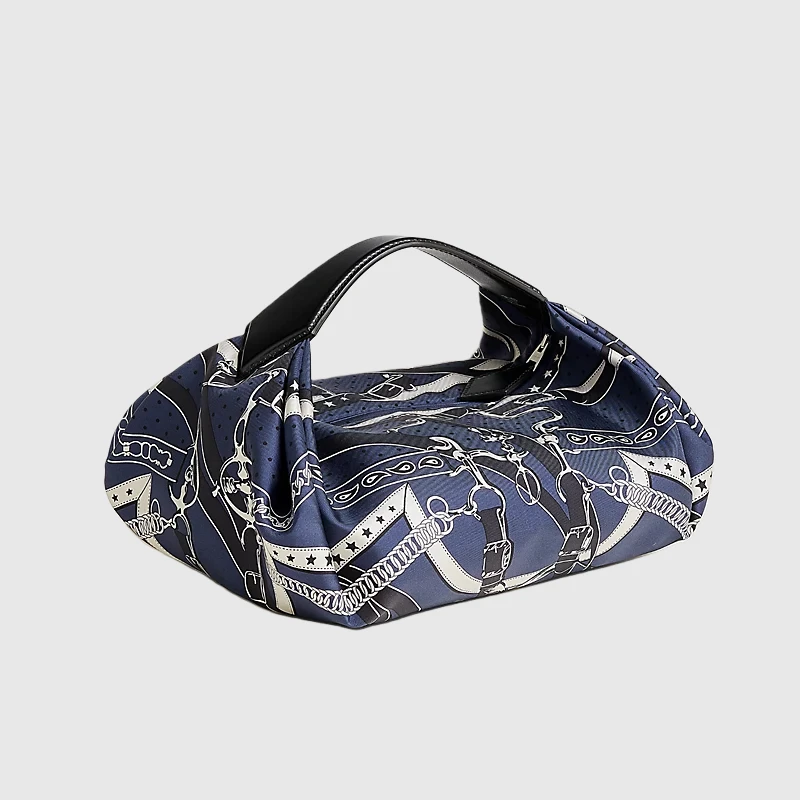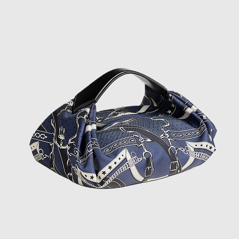 Bag in “La Promenade du Matin Bandana” printed silk and Hunter cowhide