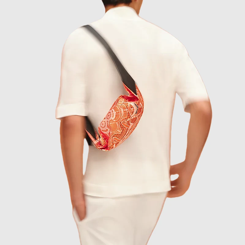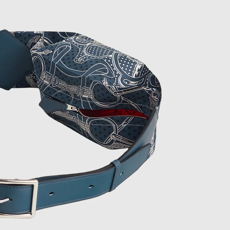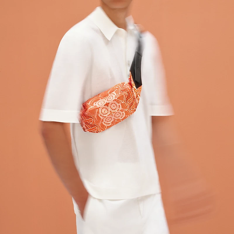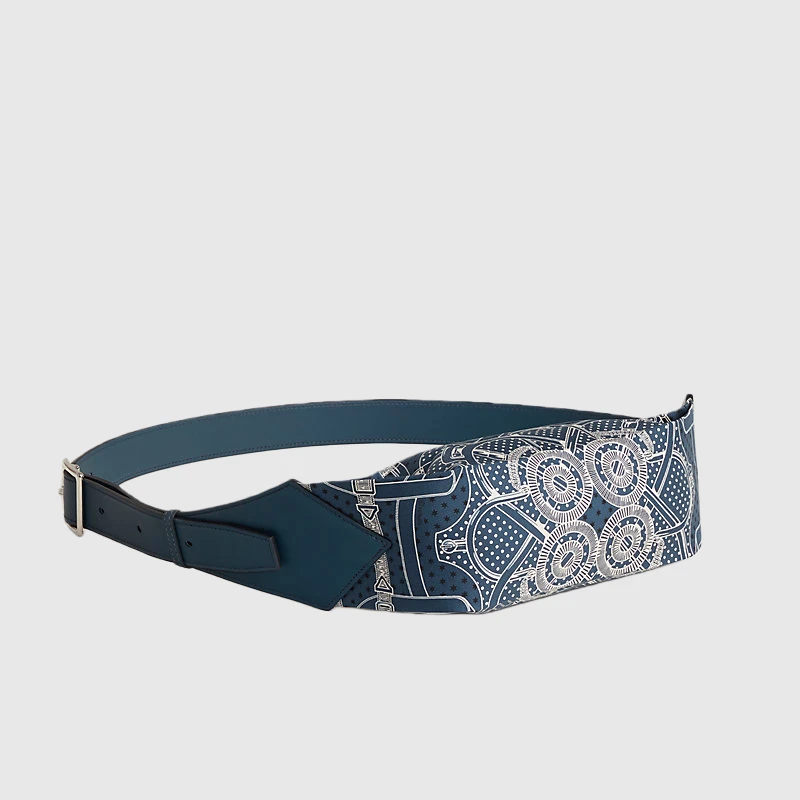 Belt bag in “Eperon d’Or” printed silk and Swift calfskin