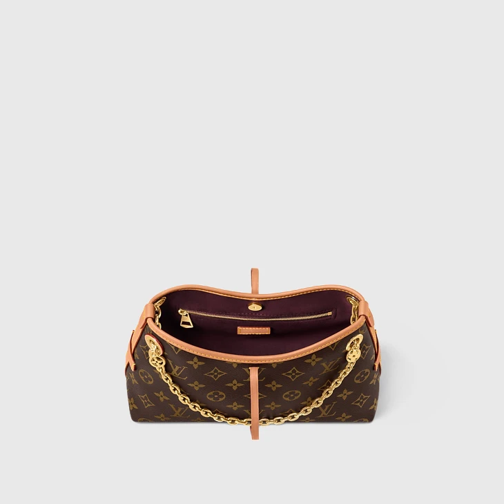 The iconic CarryAll BB is refreshed for the season in this chic day-to-evening edition. Crafted from the House’s Monogram canvas, it is embellished with a gold-toned chain adorned with Monogram Flowers. Signature details include a contrasting leather name tag, which beautifully matches the lace closure. Use the inside zipped pocket to keep an everyday credit card within easy reach.