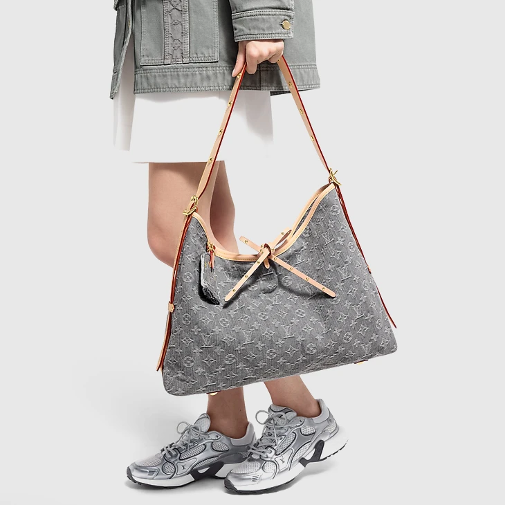 The iconic 2005 Monogram Denim pattern returns with this contemporary iteration of the CarryAll MM. Designed as the perfect city bag, it is made from organic cotton that has undergone a unique LV bleaching technique to create a washed finish. The sleek design is trimmed with contrasting leather details, and comes with a removable name tag. Use the inside zipped pocket to store valuables.