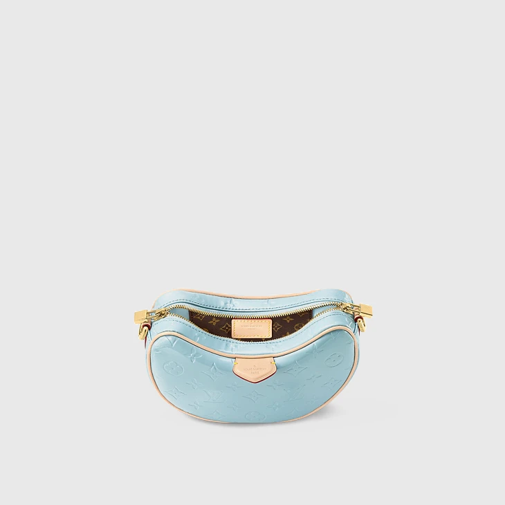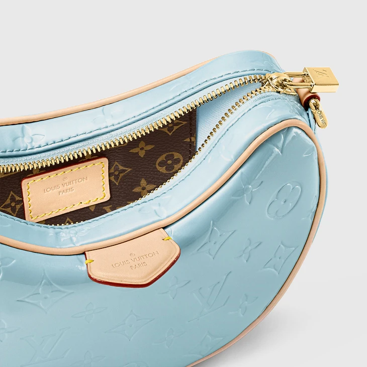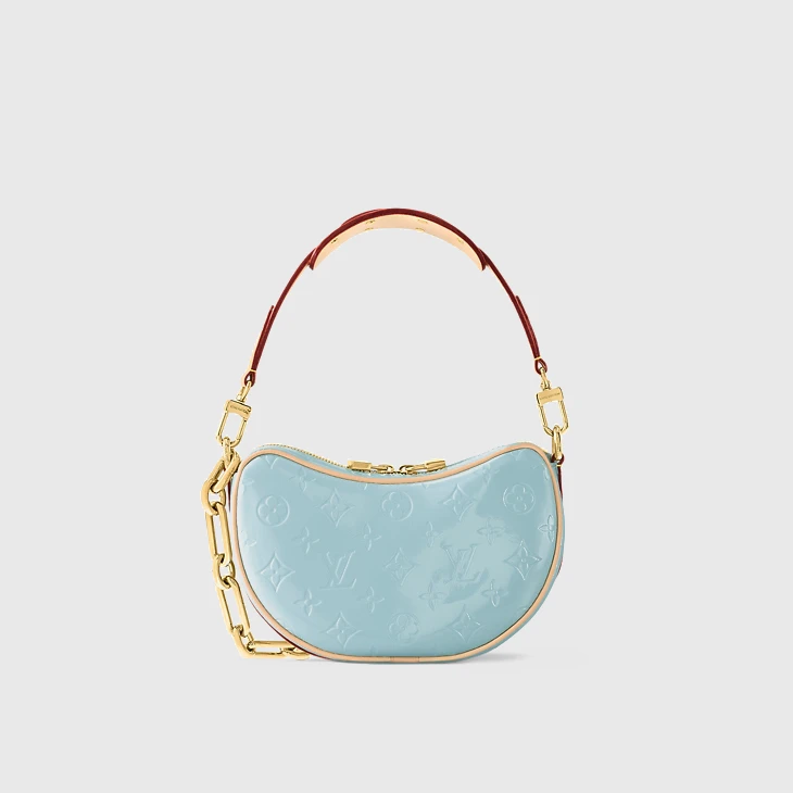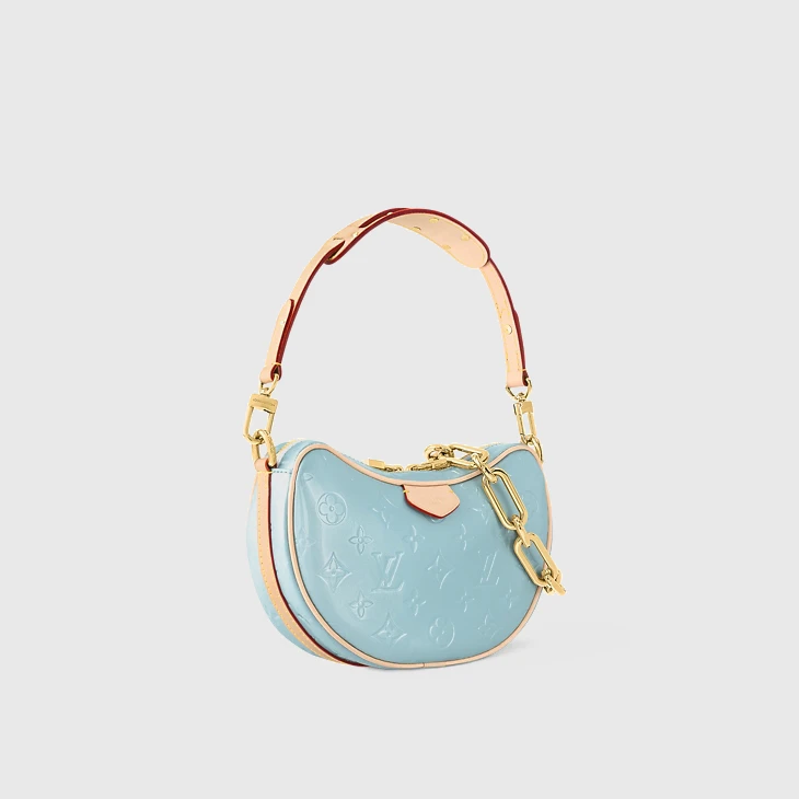 Fashioned from glossy Monogram Vernis cowhide leather with the Monogram pattern discreetly embossed into the leather, the Croissant PM takes on a glamourous aspect. An effect only amplified by the pastel colorway and removable gold-color chain. The interior features a flat pocket. The removable, non-adjustable strap enables short-shoulder carry.