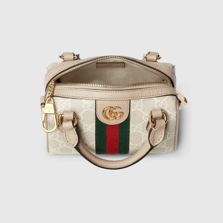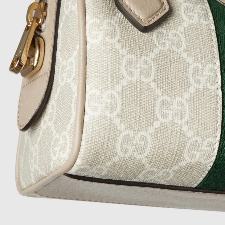 The Ophidia line is enriched by the introduction of the boston mini bag. Crafted from beige and oatBeige and oatmeal GG Supreme canvas