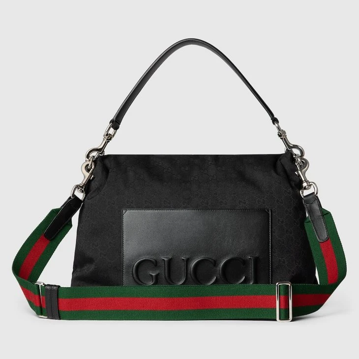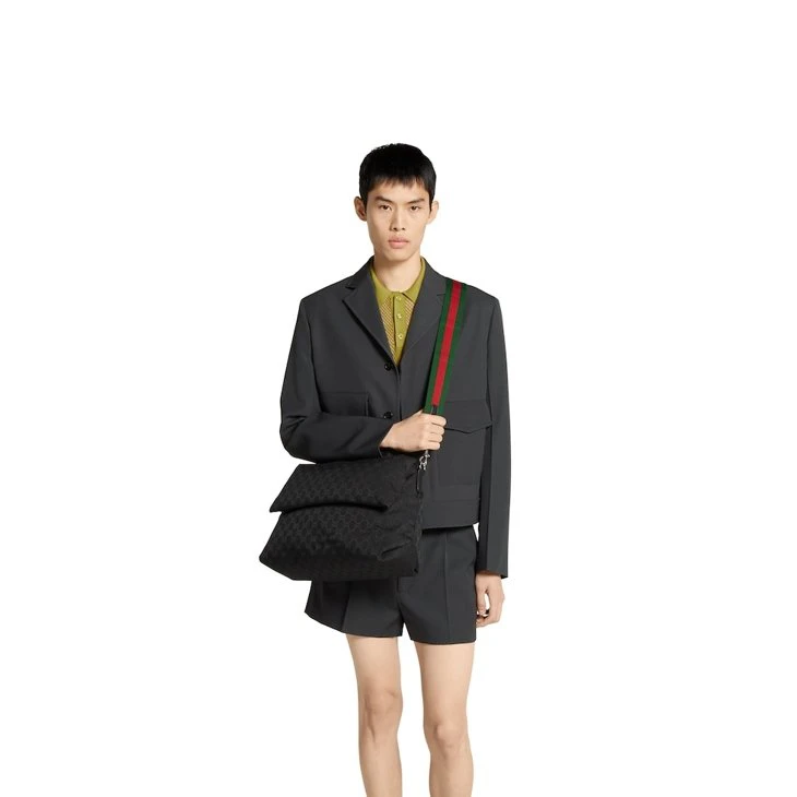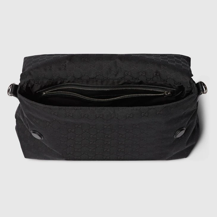 In the Spring Summer 2025 collection, softly-structured men’s bags combine craftsmanship and functionality with a smooth texture and a practical, magnetic flap closure. This crossbody bag appears in all black GG canvas. A subtle embossed Gucci logo defines the back.Black GG canvas