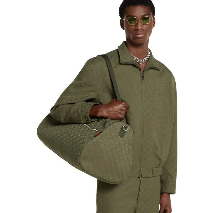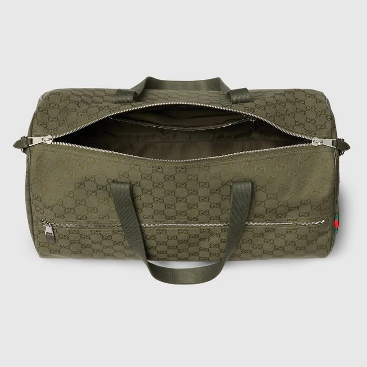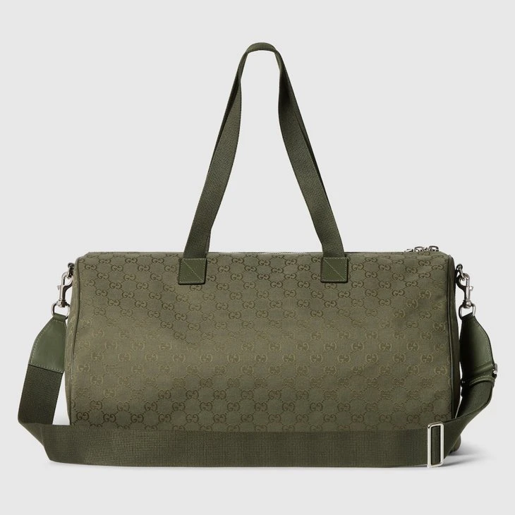 Crafted from a GG canvas, this duffle bag pays homage to founder Guccio Gucci’s instantly-recognizable monogram. Spotlighting a new forest green shade that lends a modern touch to everyday accessories, the design is complete with a Web detail.Forest green GG canvas