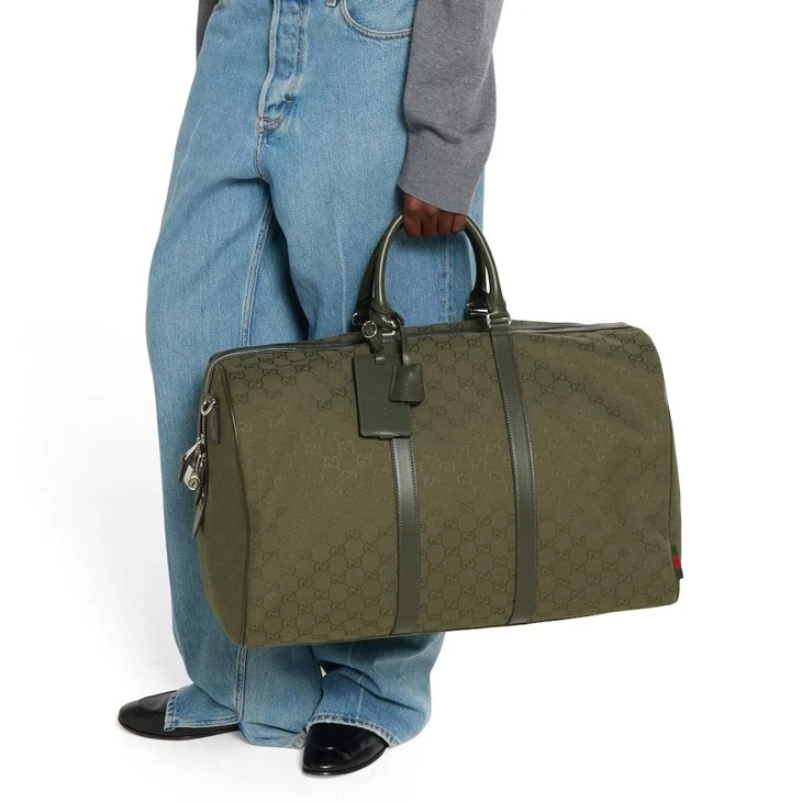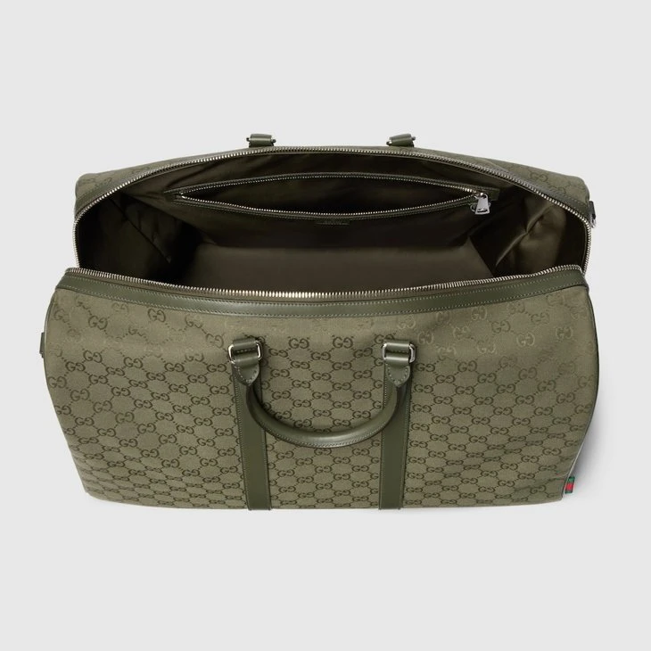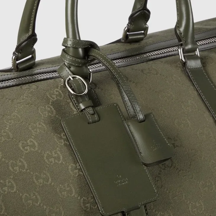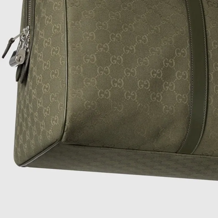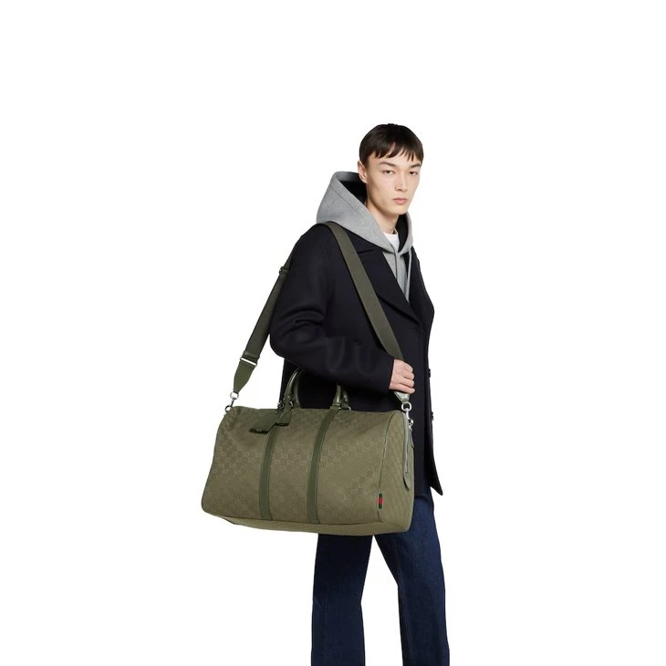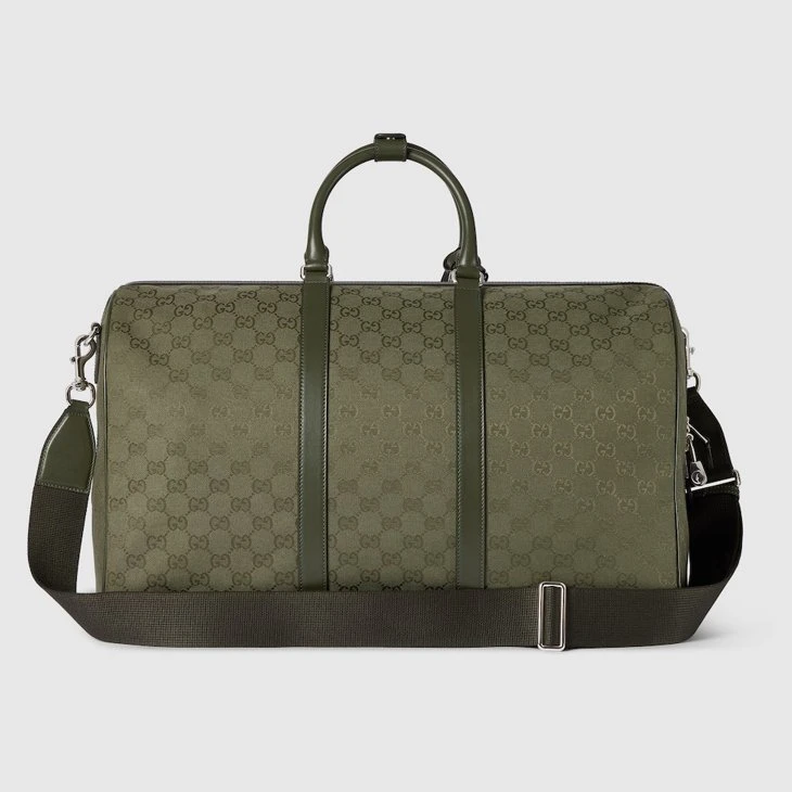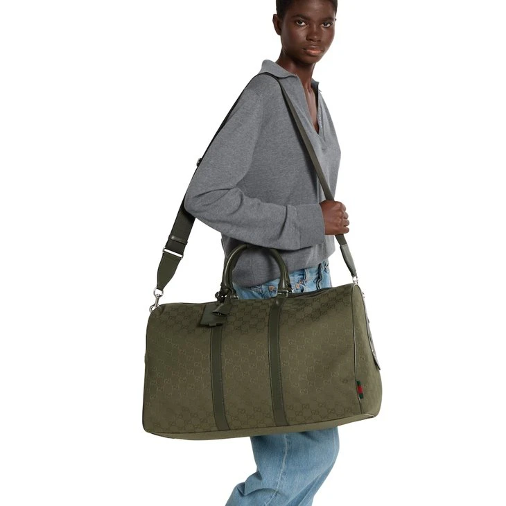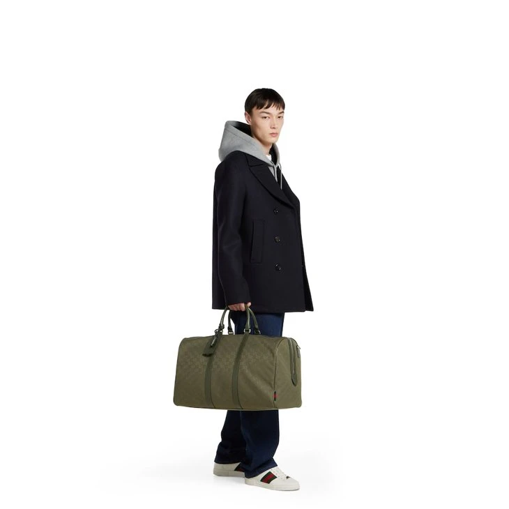 Crafted from a GG canvas, this duffle bag pays homage to founder Guccio Gucci’s instantly-recognizable monogram. Spotlighting a new forest green shade that lends a modern touch to everyday accessories, the design is complete with a Web detail.Forest green GG canvas