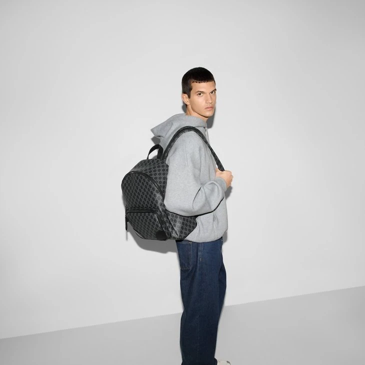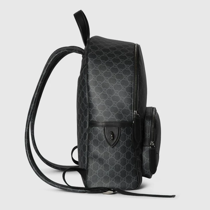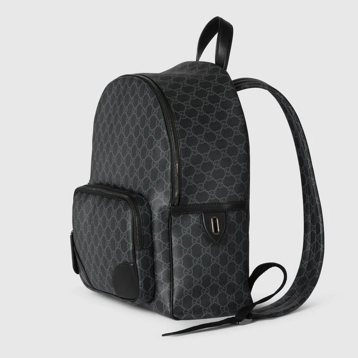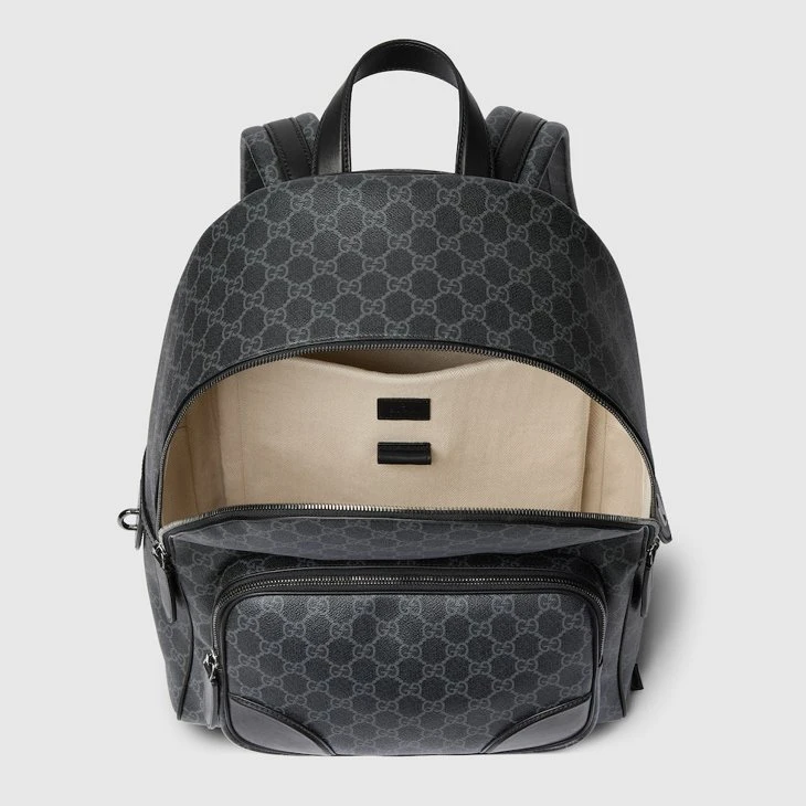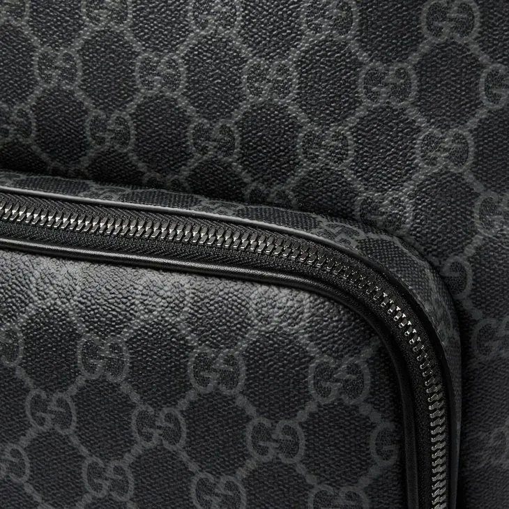 The new GG Emblem collection for men’s travel reinterprets the House’s history of elegance and craftsmanship. This backpack is crafted from the new black GG Monogram coated fabric and features versatile inside pockets and an outside D-ring to attach accessories.Black new GG Monogram coated fabric