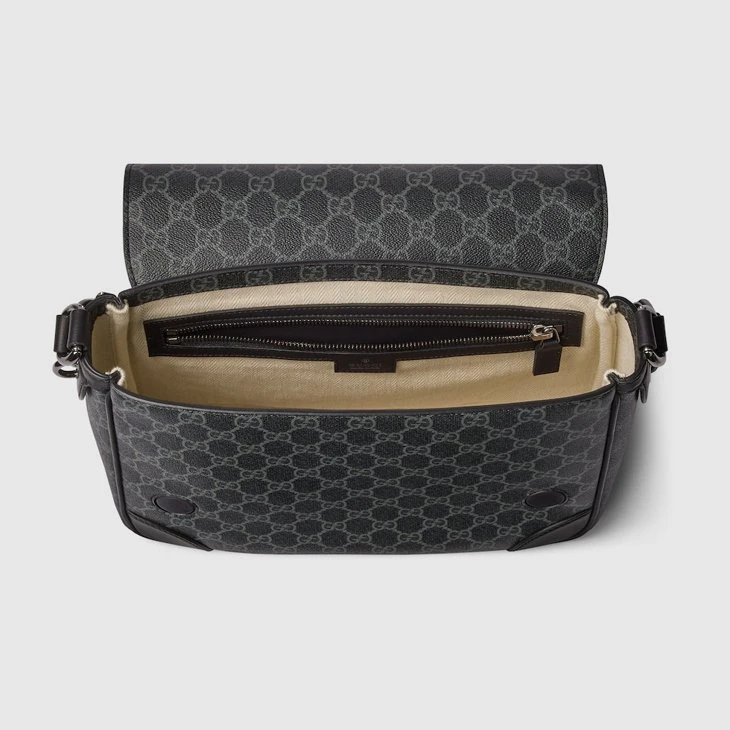 The new GG Emblem collection for men’s travel reinterprets the House’s history of elegance and craftsmanship. This crossbody bag is crafted from the new black GG Monogram coated fabric and features an inside zip pocket and adjustable shoulder strap.Black new GG Monogram coated fabric