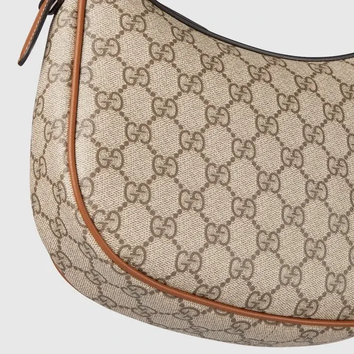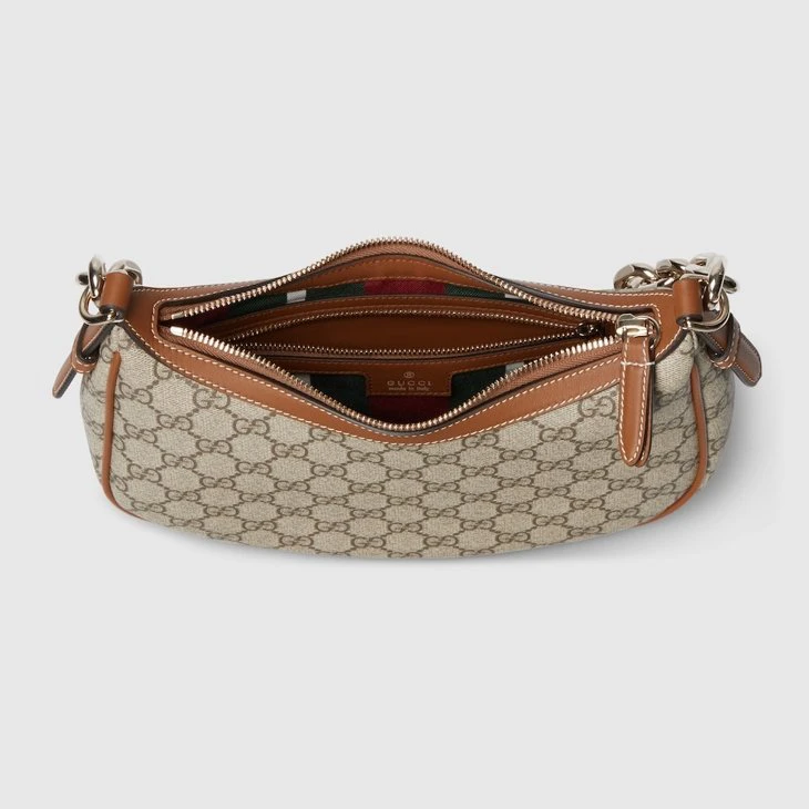 In the Fall Winter 2025 collection, the GG Emblem collection reinterprets the House’s history of elegance and craftsmanship. This shoulder bag features a light gold-toned chain, and comes with an additional leather shoulder strap for crossbody wear.Beige and dark brown new GG Monogram coated fabric
