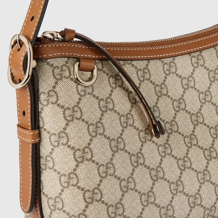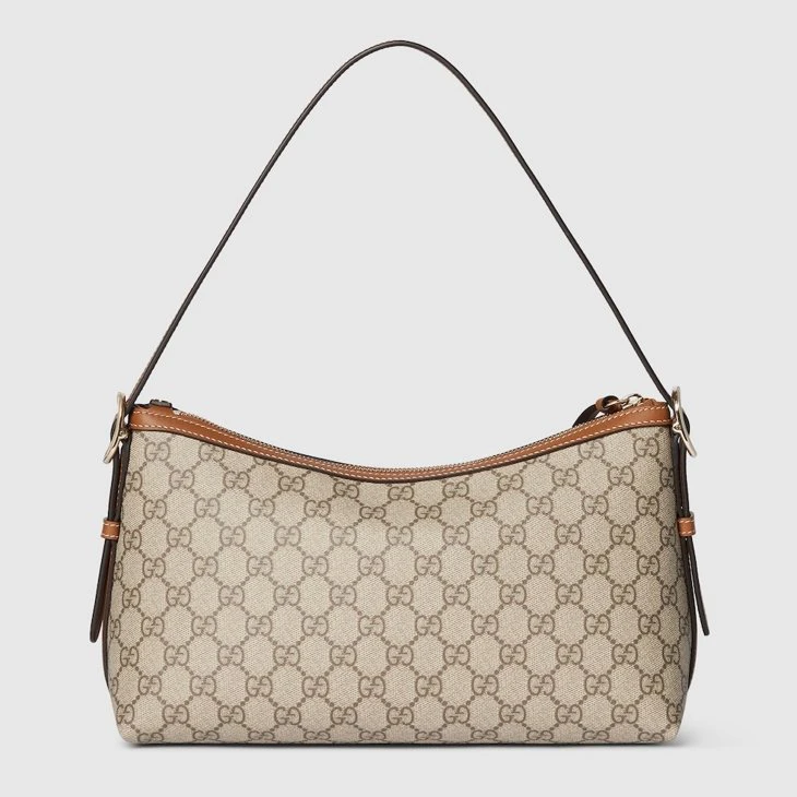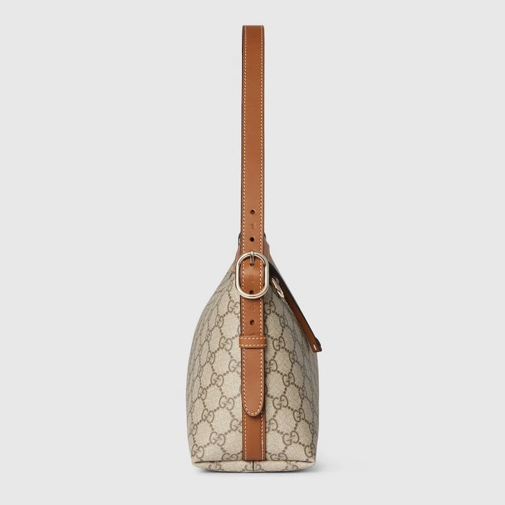 In the Fall Winter 2025 collection, the GG Emblem collection reinterprets the House’s history of elegance and craftsmanship. This shoulder bag is made from GG Monogram coated fabric.Beige and dark brown new GG Monogram coated fabric