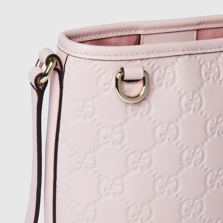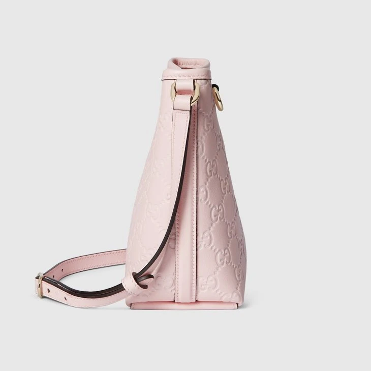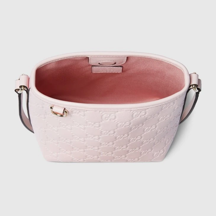 In the Fall Winter 2025 collection, part of the new GG Emblem collection, this mini bucket bag reinterprets House codes through a functional lens. Characterized by a compact silhouette and refined details, it features a long shoulder strap for comfortable wear, making it a versatile option from day to evening.Pink GG embossed leather