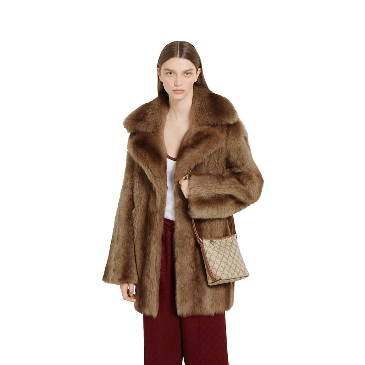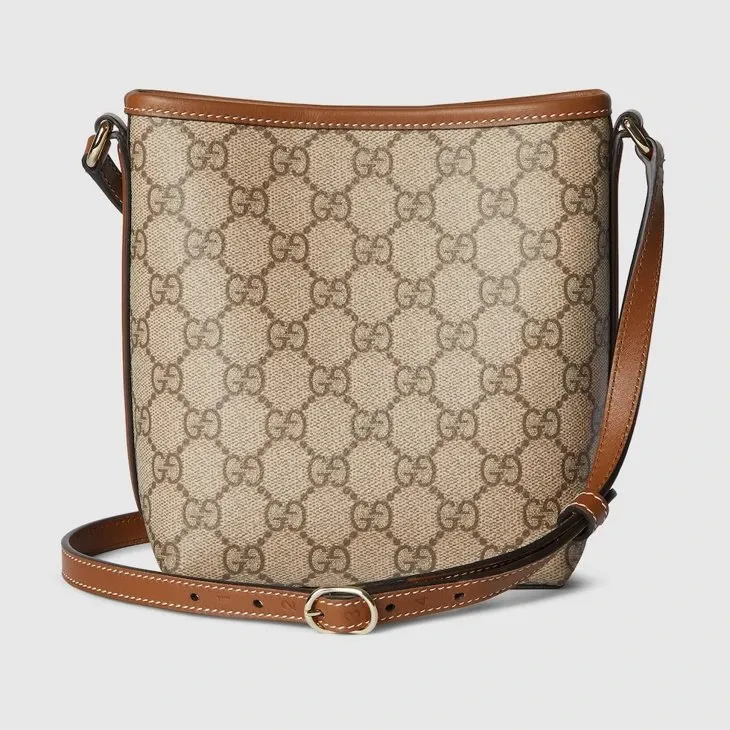In the Fall Winter 2025 collection, part of the new GG Emblem collection, this mini bucket bag reinterprets House codes through a functional lens. Characterized by a compact silhouette and refined details, it features a long shoulder strap for comfortable wear, making it a versatile option from day to evening.Beige and dark brown new GG Monogram coated fabric