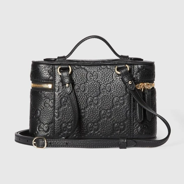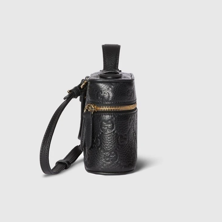 The GG Emblem collection reinterprets signature motifs through creativity and innovative functions, and is envisioned to be cherished for years to come. Introduced in the latest line of small accessories, this small bag is crafted from emblematic GG grainy leather. The versatile design features two card slots on the inside and an adjustable leather shoulder strap.Black GG grainy leather