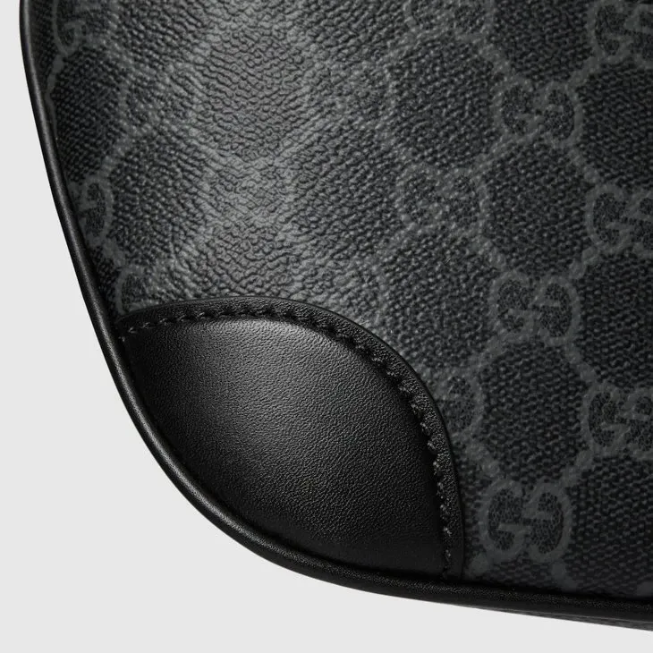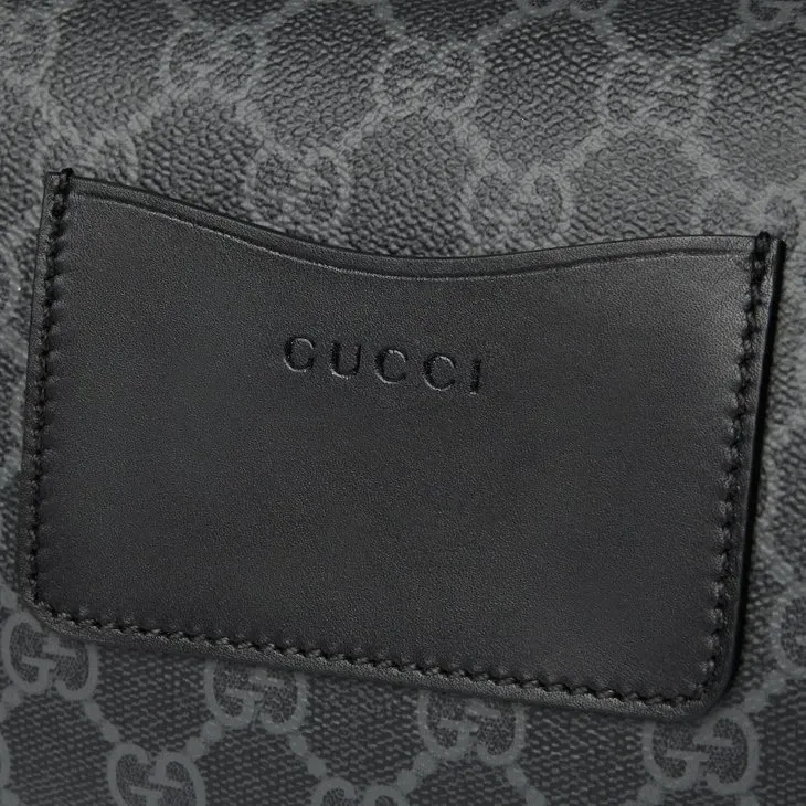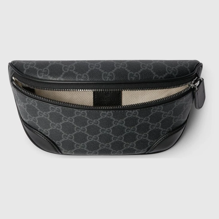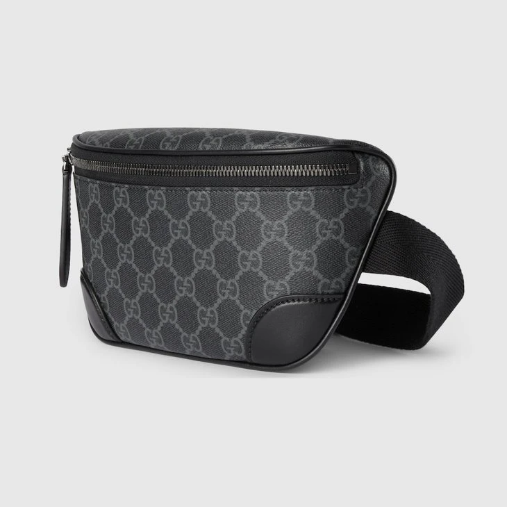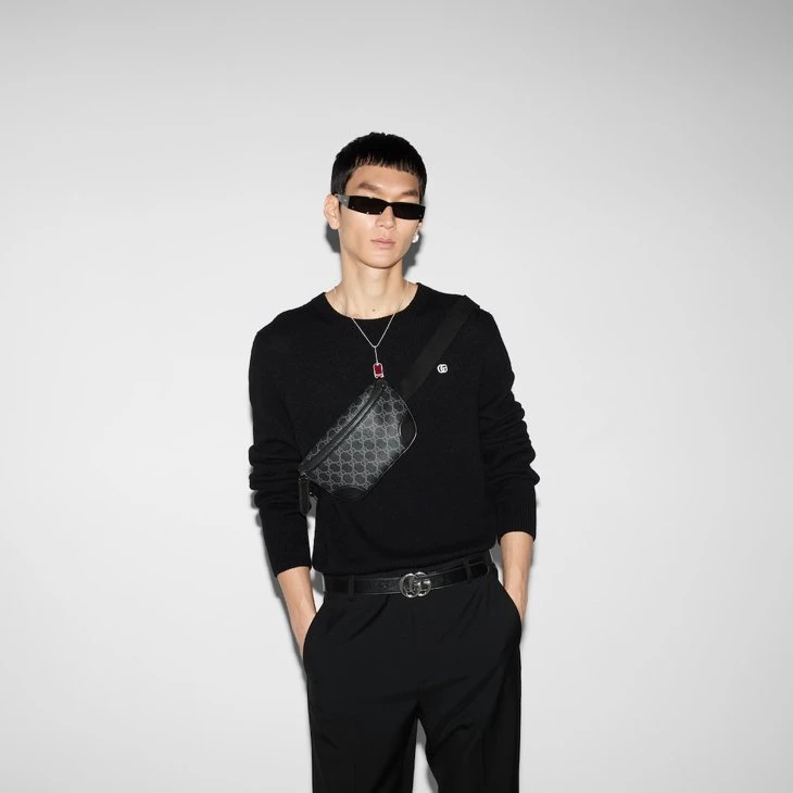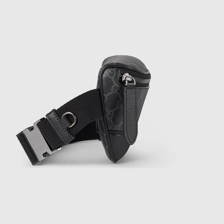 The new GG Emblem collection for men’s travel reinterprets the House’s history of elegance and craftsmanship. This belt bag is crafted from the new black GG Monogram coated fabric and features an open pocket and an outside D-ring to attach accessories.Black new GG Monogram coated fabric