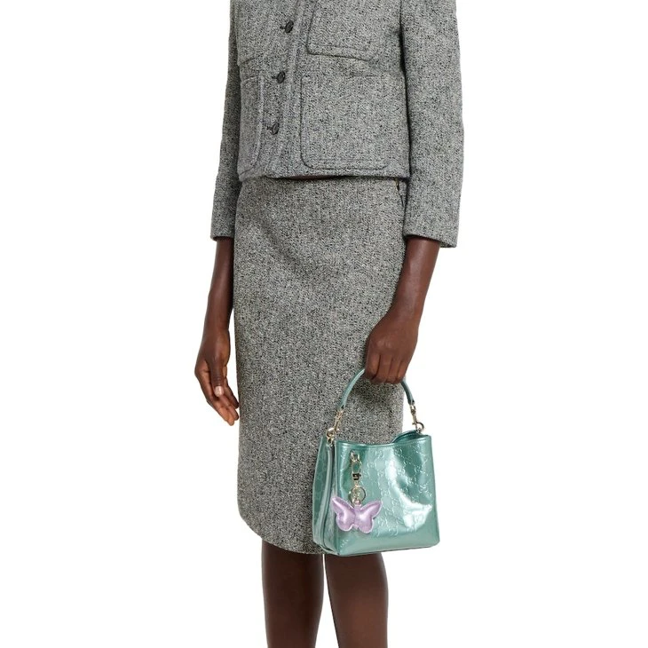 The bag charm shown is sold separately and not included with the handbag.
