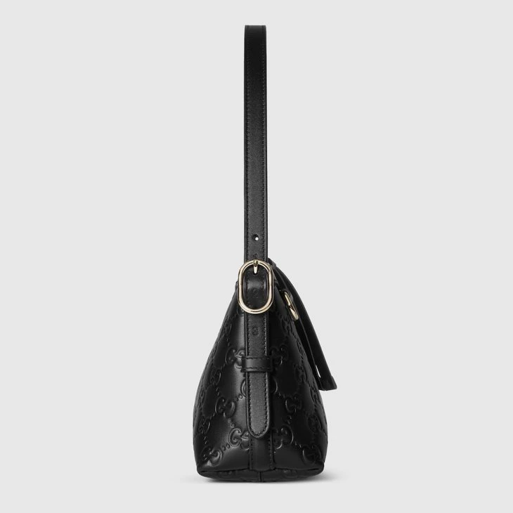 In the Fall Winter 2025 collection, the GG Emblem collection reinterprets the House’s history of elegance and craftsmanship. This shoulder bag is made from GG embossed leather.Black GG embossed leather