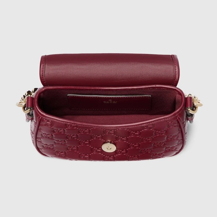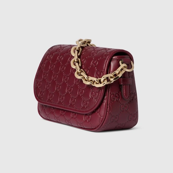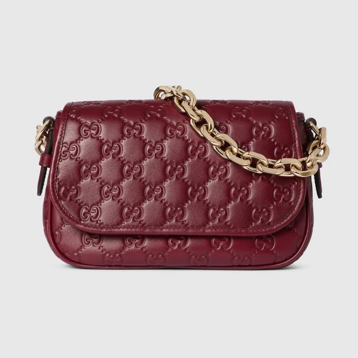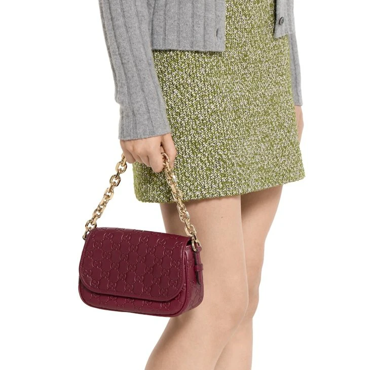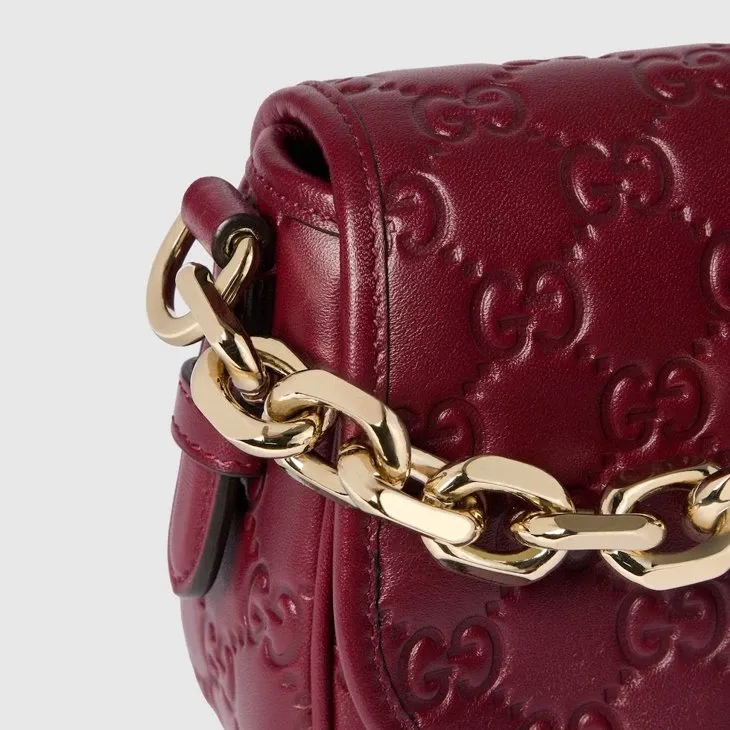 In the Fall Winter 2025 collection, the new GG Emblem collection reinterprets the House’s history of elegance and craftsmanship. This design features both a chain shoulder strap and additional adjustable leather strap.Gucci Rosso Ancora red embossed GG leather