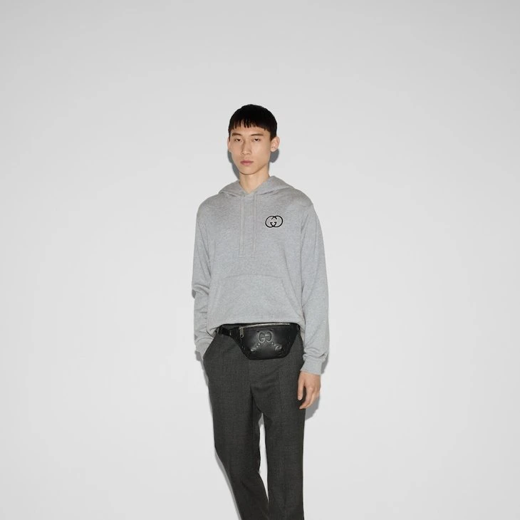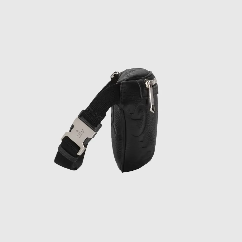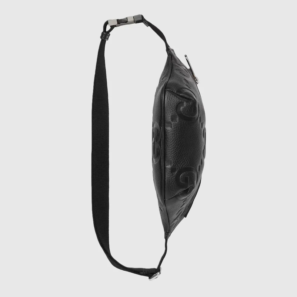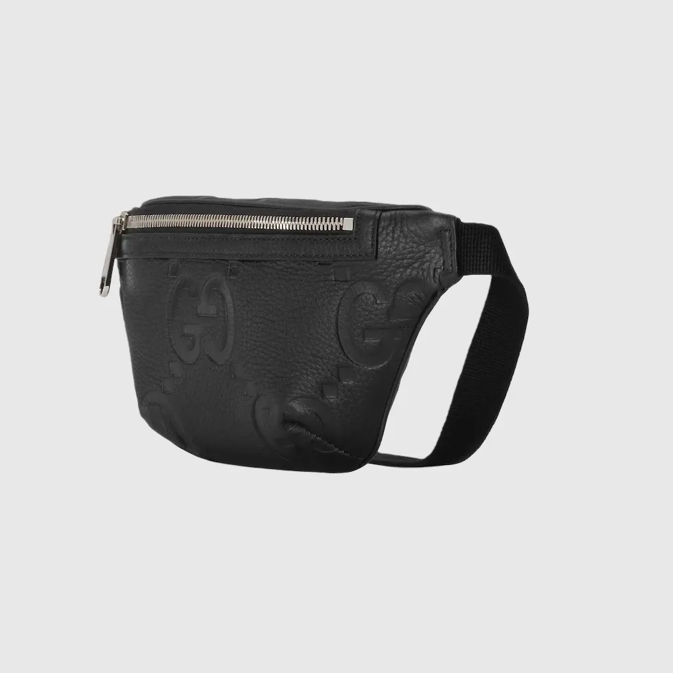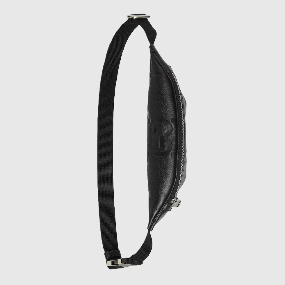 The all-black jumbo GG design returns for Pre-Fall 2023 on a selection of leather luggage pieces. A reinterpretation of Guccio Gucci’s initials, the motif is an evergreen of the House that appears prominently in maxi size for an eye-catching logo feel. This belt bag in the emblematic leather can be worn cross-body for multiple ways to wear.Black jumbo GG leather