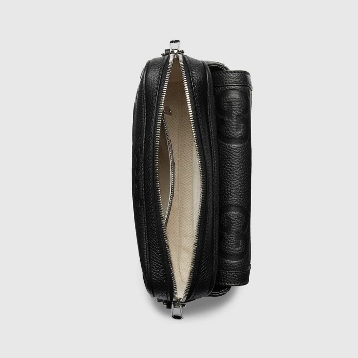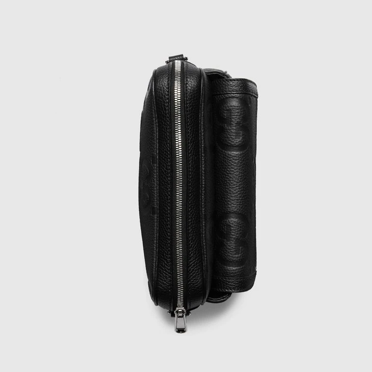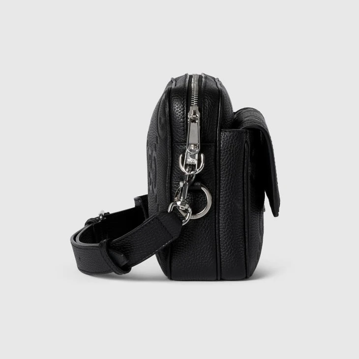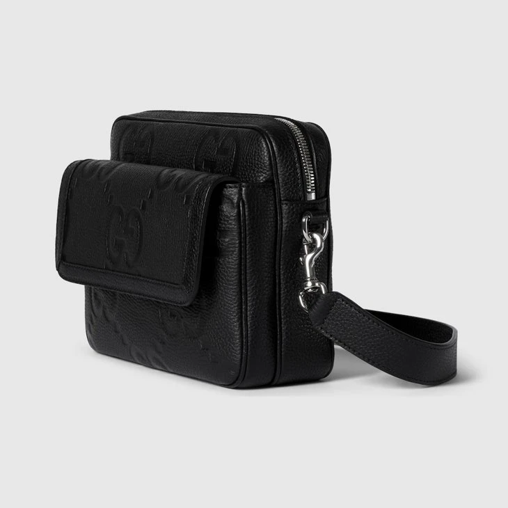 The jumbo GG continues to enrich the latest collections with a maxi version of the House logo. For Pre-Fall, the well-known motif in black speaks to everyday wear. Here it defines this cross-body bag, complete with an inside zip pocket and outside flap pocket.Black jumbo GG leather