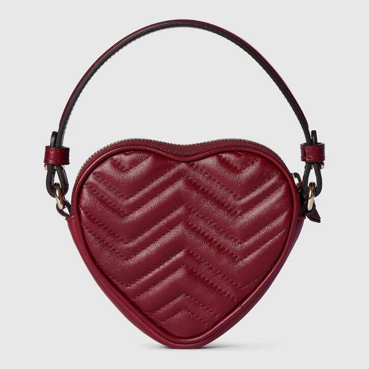 Shaped like a heart, the GG Marmont mini bag takes on a playful silhouette in soft Gucci Rosso Ancora red matelassé chevron leather. The compact design is finished with the signature Double G hardware in light gold-tone.Gucci Rosso Ancora red matelassé chevron leather