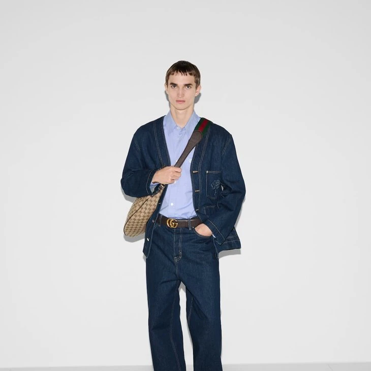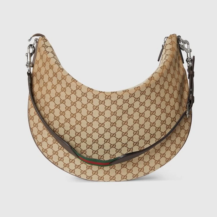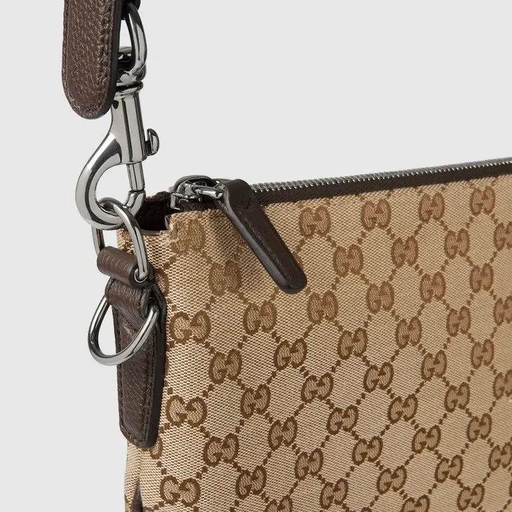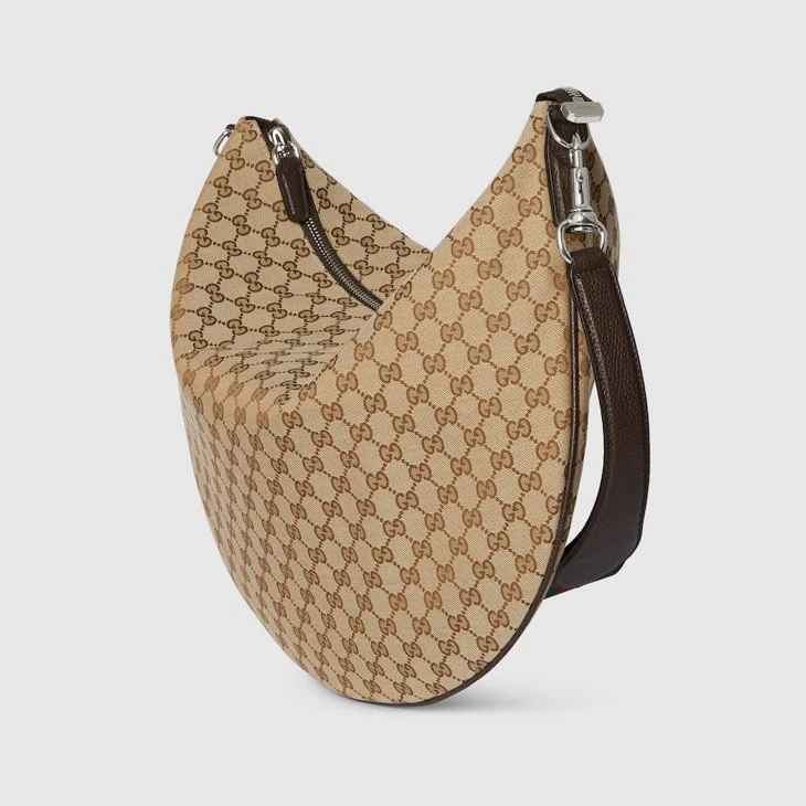 Part of the Cruise 2025 collection, the Gucci B bag draws its name from an archive design, re-envisioned here with a relaxed silhouette that drapes across the body. Appearing in a beige and dark brown GG canvas, the style has an external D-ring to attach er accessories and complete the look.Beige and dark brown GG canvas
