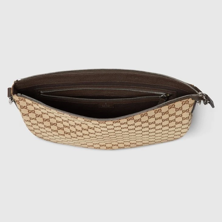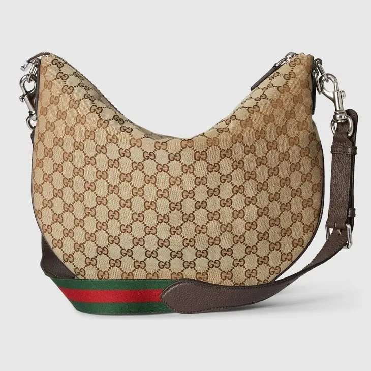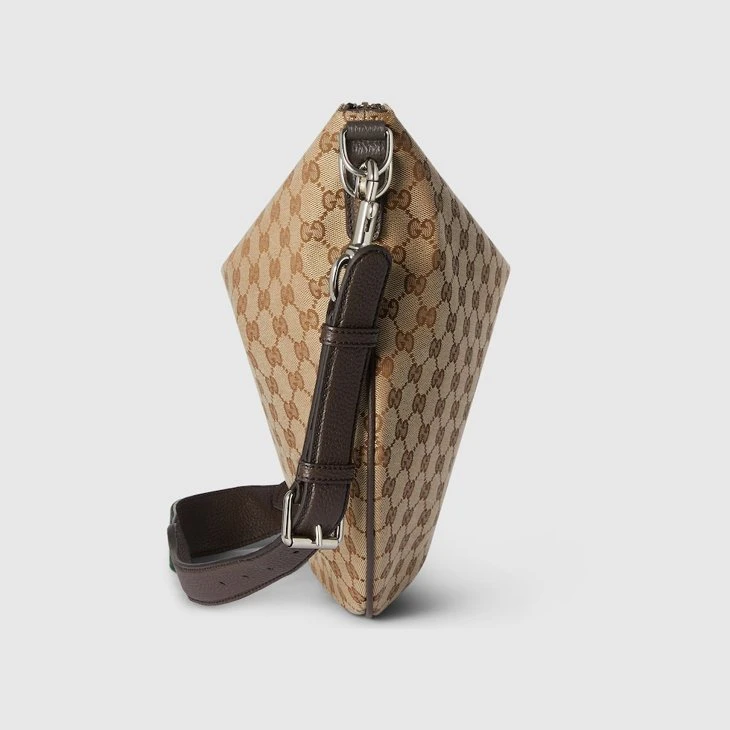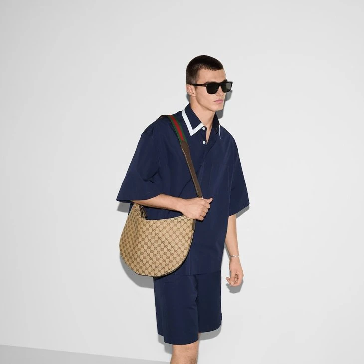 Part of the Cruise 2025 collection, the Gucci B bag draws its name from an archive design, re-envisioned here with a relaxed silhouette that drapes across the body. Appearing in a beige and dark brown GG canvas, the style has an external D-ring to attach er accessories and complete the look.Beige and dark brown GG canvas