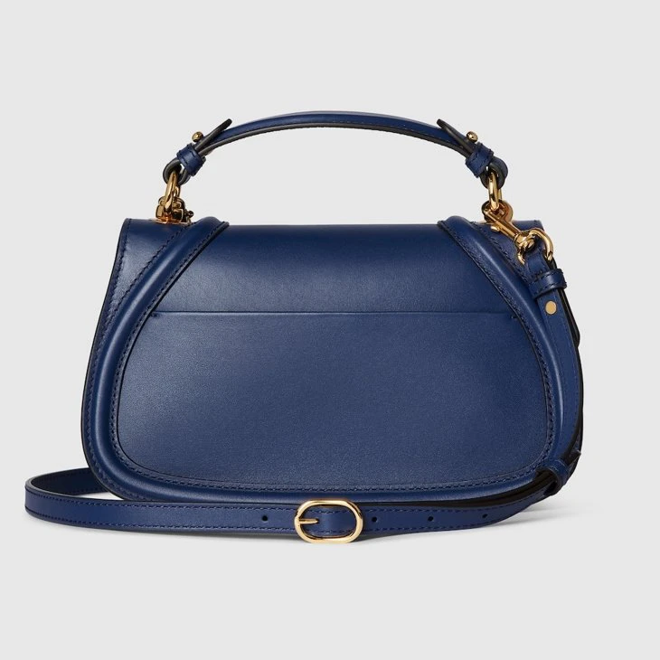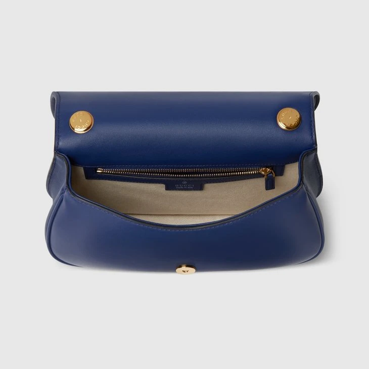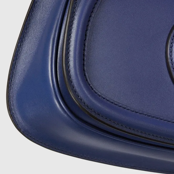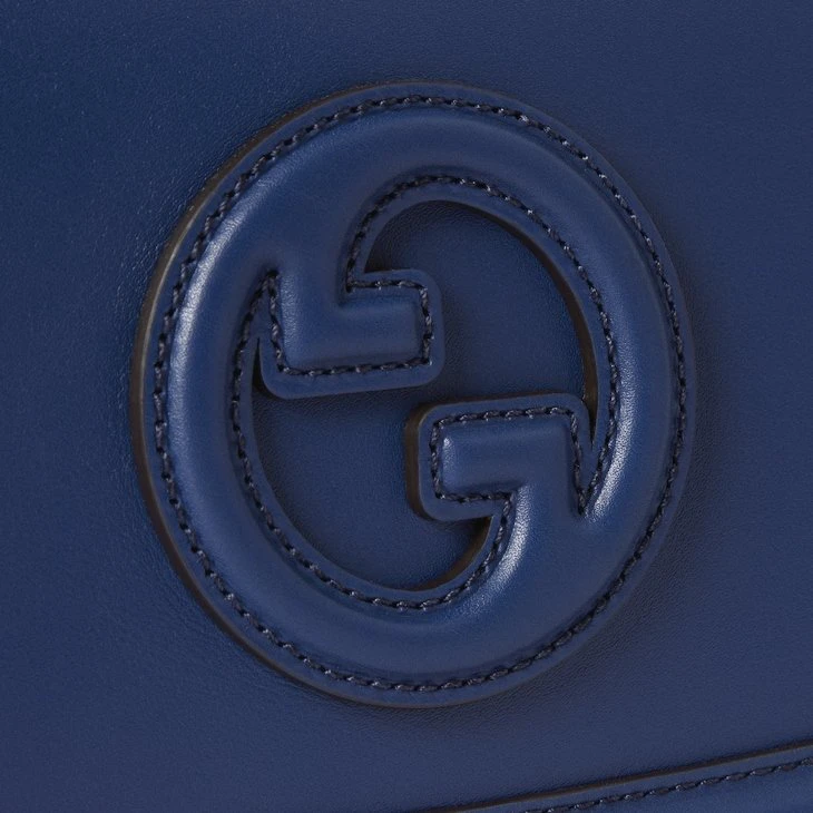 The Gucci Blondie bag, whose distinctive logo first appeared in the House’s collections in the early 1970s, weaves together past and present in a fusion of nostalgia and modernity.Blue smooth leather