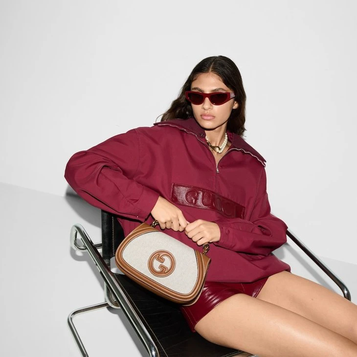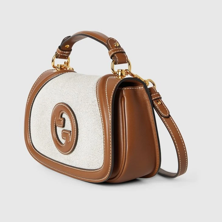 The new Gucci Blondie bag, whose distinctive logo first appeared in the House’s collections in the early 1970s, weaves together past and present in a fusion of nostalgia and modernity. Presented in fresh beige cotton linen canvas and smooth brown leather trim, this medium bag is complete with a top handle and adjustable shoulder strap.Beige cotton linen canvas