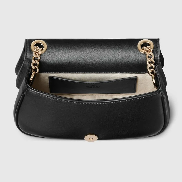 The new Gucci Blondie bag, whose distinctive logo first appeared in the House’s collections in the early 1970s, weaves together past and present in a fusion of nostalgia and modernity.Black leather