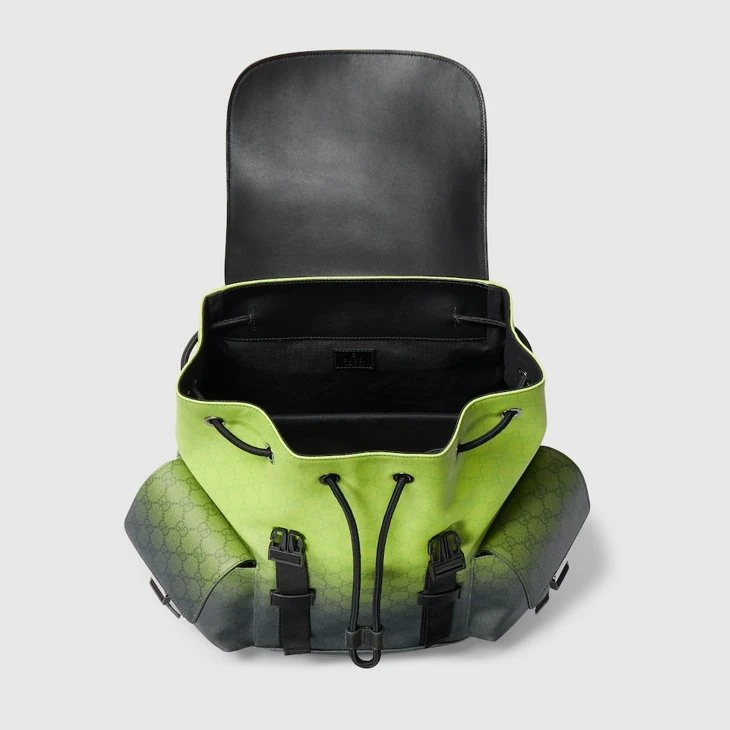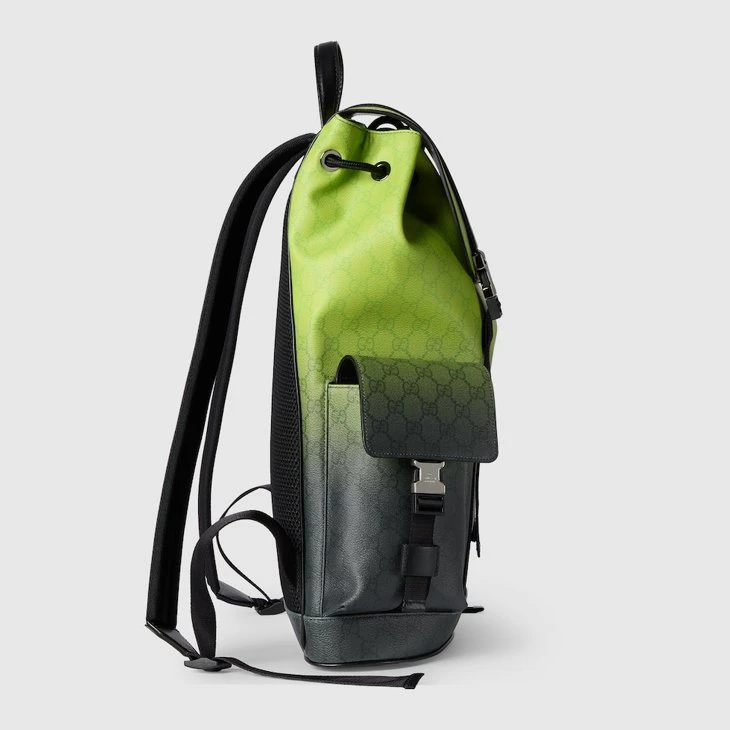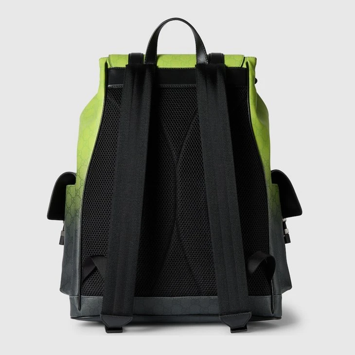 Gradient-effect print in the refreshing shade of blue sheds new light on essential functions. This backpack is presented in GG Monogram coated fabric with an allover gradient print.Gradient lime and black GG Monogram coated fabric