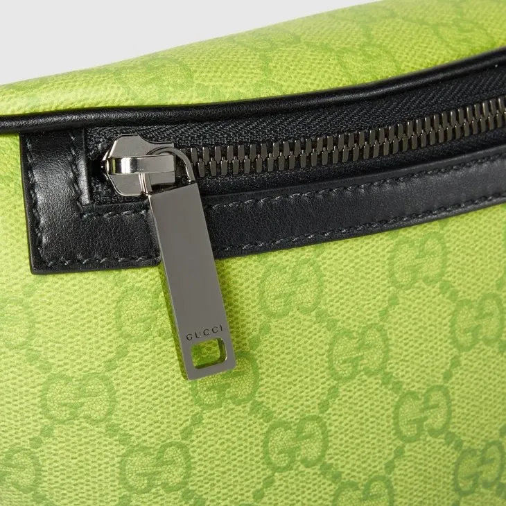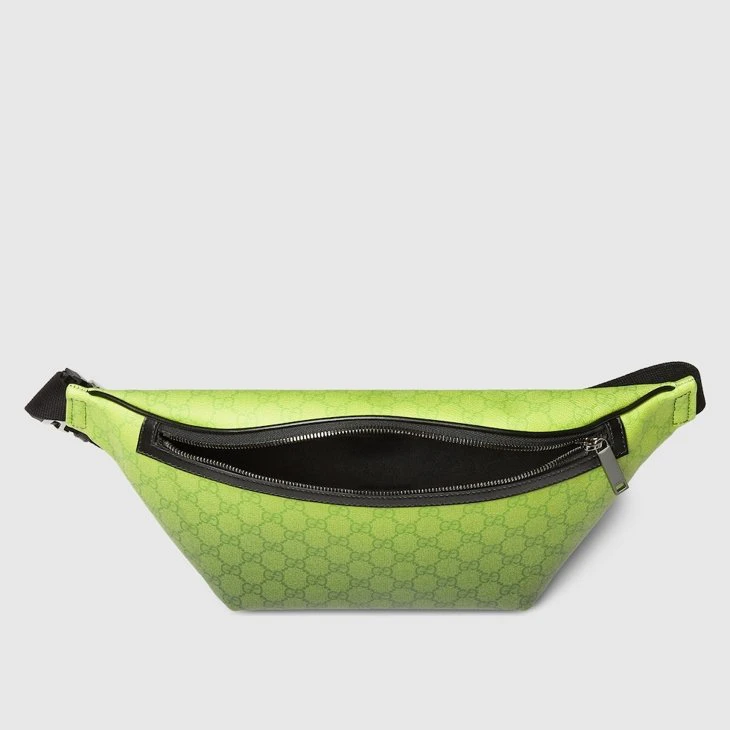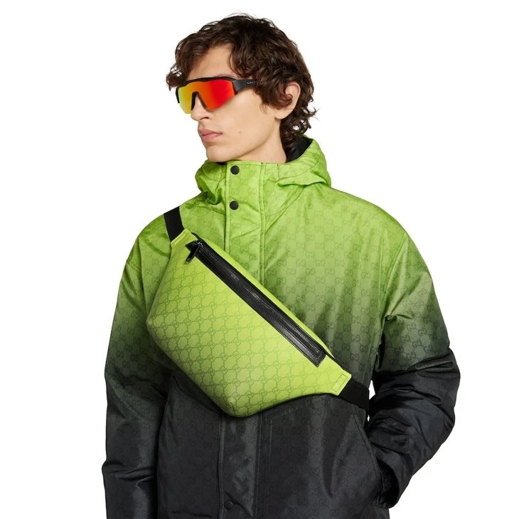 Gradient-effect print in the refreshing shade of blue sheds new light on essential functions. This belt bag is presented in GG Monogram coated fabric with an allover gradient print.Gradient lime and black GG Monogram coated fabric