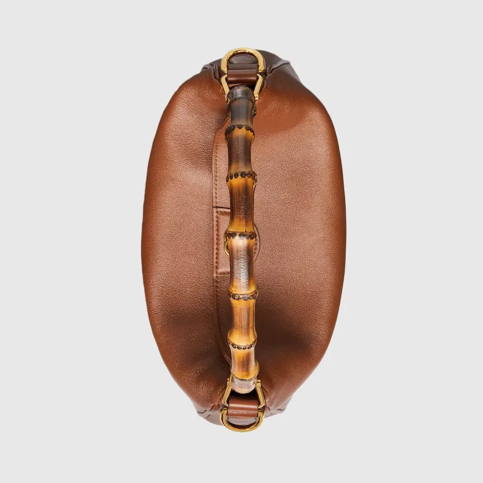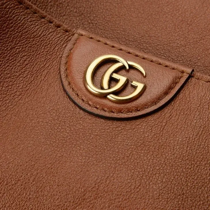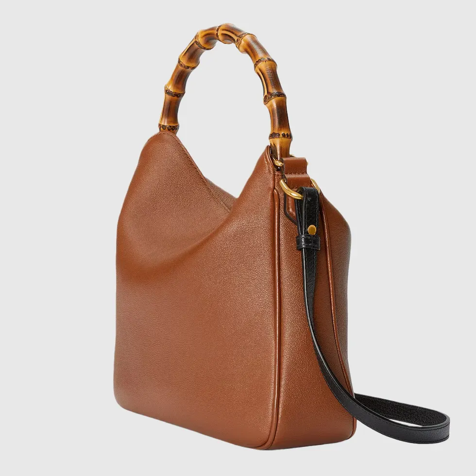 Combining recognizable elements of the House, the shoulder bag is defined by its bamboo handles and Double G hardware. Crafted from brown leather, the accessory is further accentuated a tonal leather shoulder strap.Cuir leather