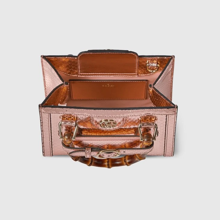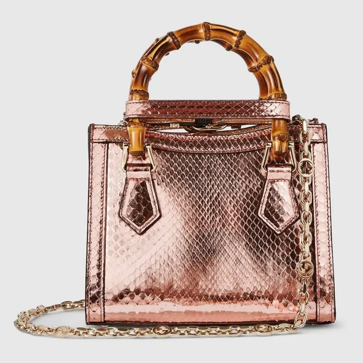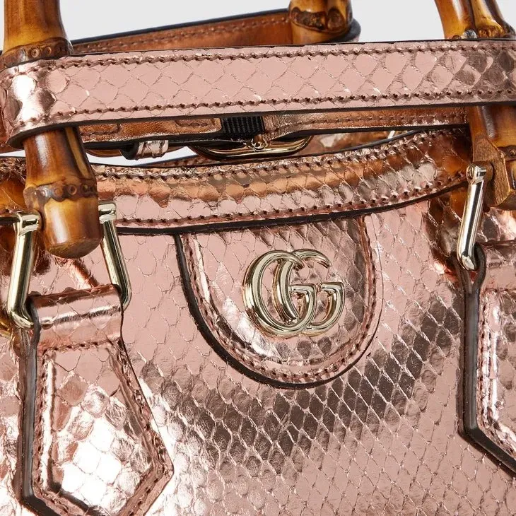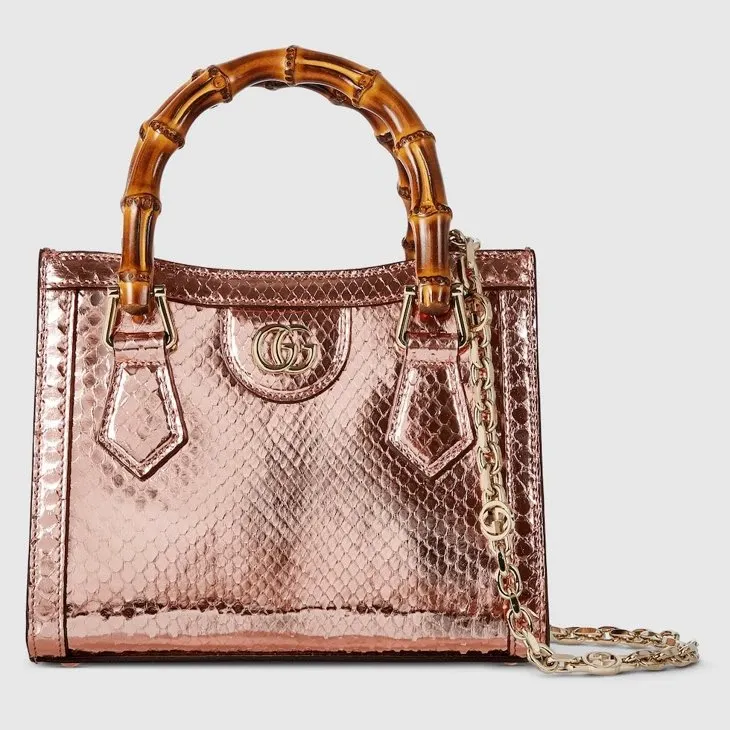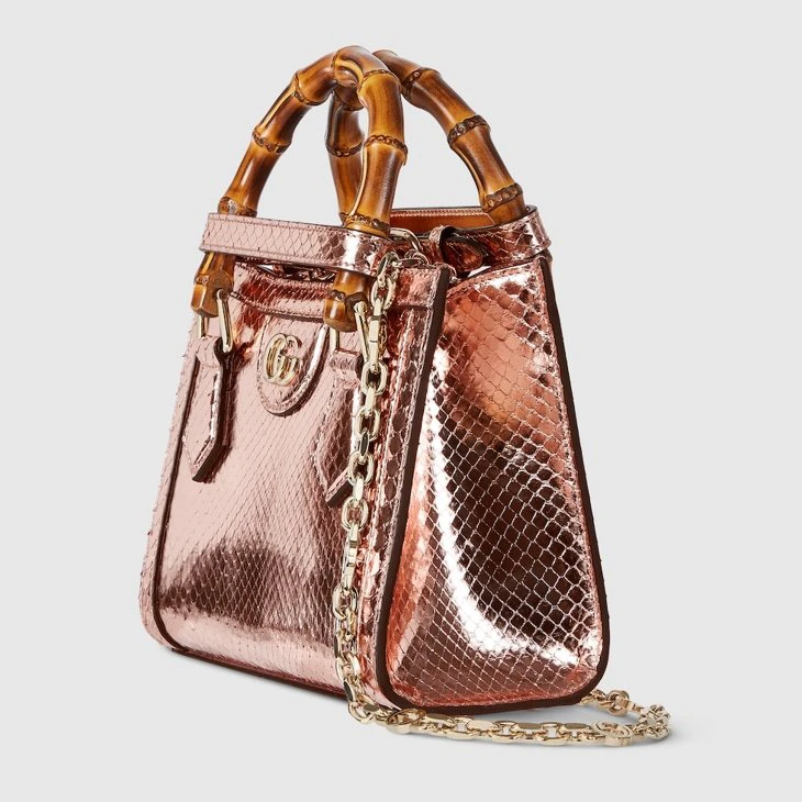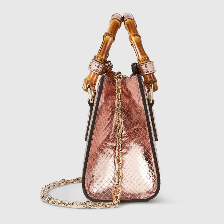 The Gucci Diana tote bag blends recognizable elements of the House, such as the bamboo handles and Bronze-toned python