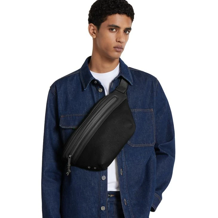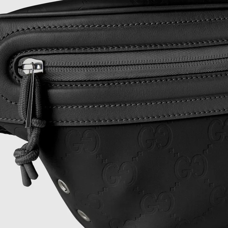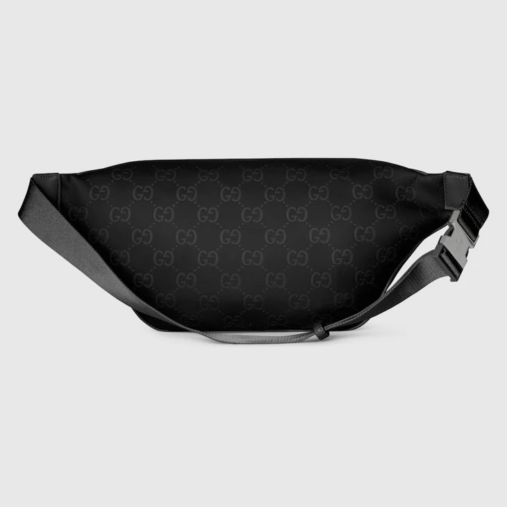 The name Gucci Edge captures the energy of streamlined silhouettes as innovative material meets lightweight adaptability, marked by the subtle GG monogram. This large belt bag is presented in a GG matte rubber fabric and completed with a tonal piping trim.Black GG matte rubber fabric