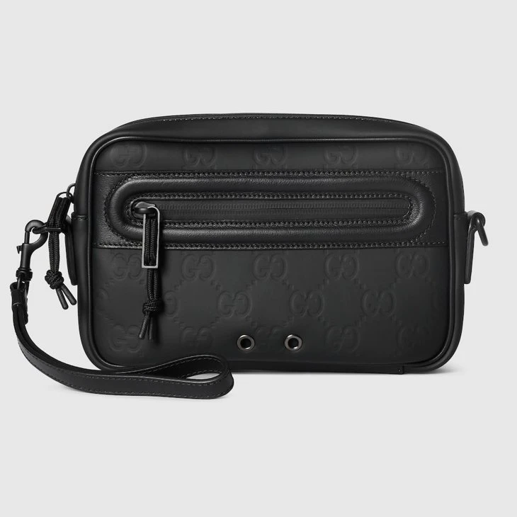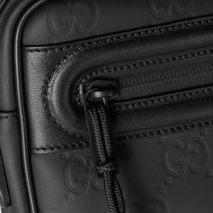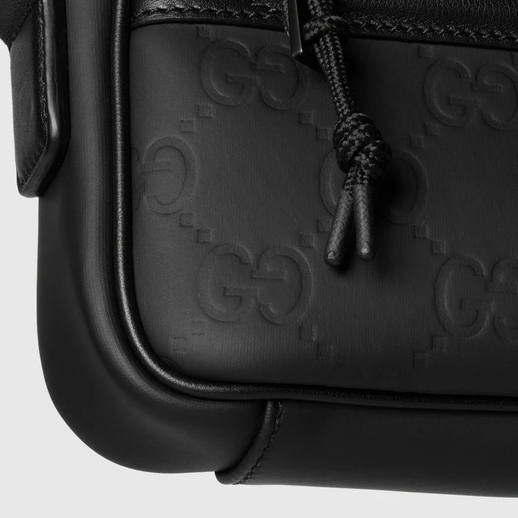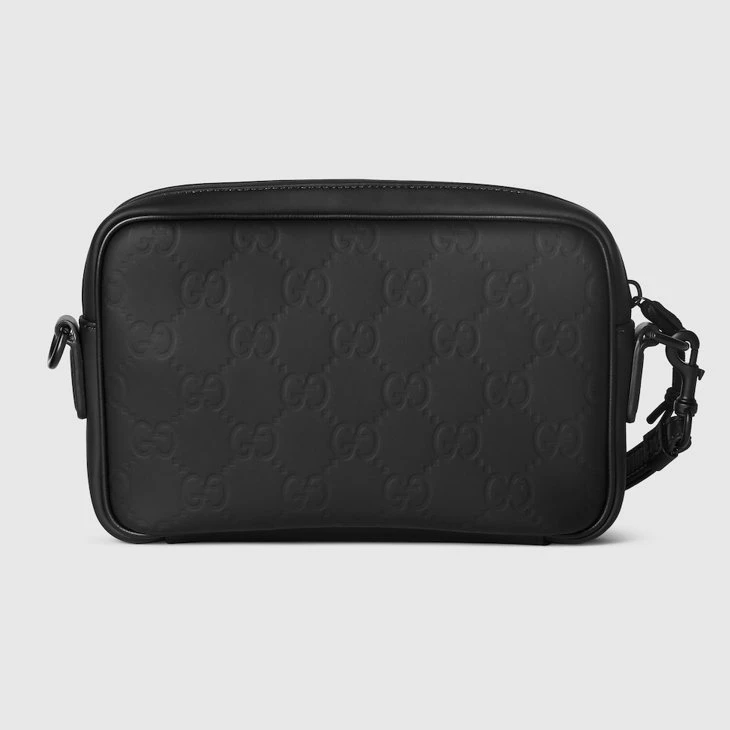 The name Gucci Edge captures the energy of streamlined silhouettes as innovative material meets lightweight adaptability, marked by the subtle GG monogram. This small crossbody bag is presented in a GG matte rubber fabric and completed with a tonal piping trim.Black GG matte rubber fabric