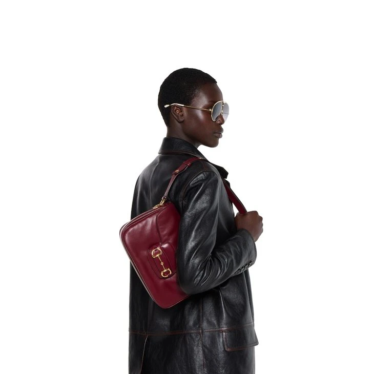 In the Fall Winter 2025 collection, the Gucci Horsebit 1955 continues its equestrian-inspired design with the double ring and bar hardware, blending light gold-toned details and soft, smooth leather on this shoulder bag.Gucci Rosso Ancora red soft leather