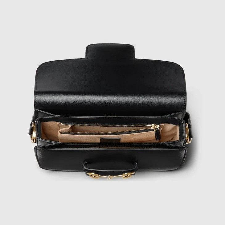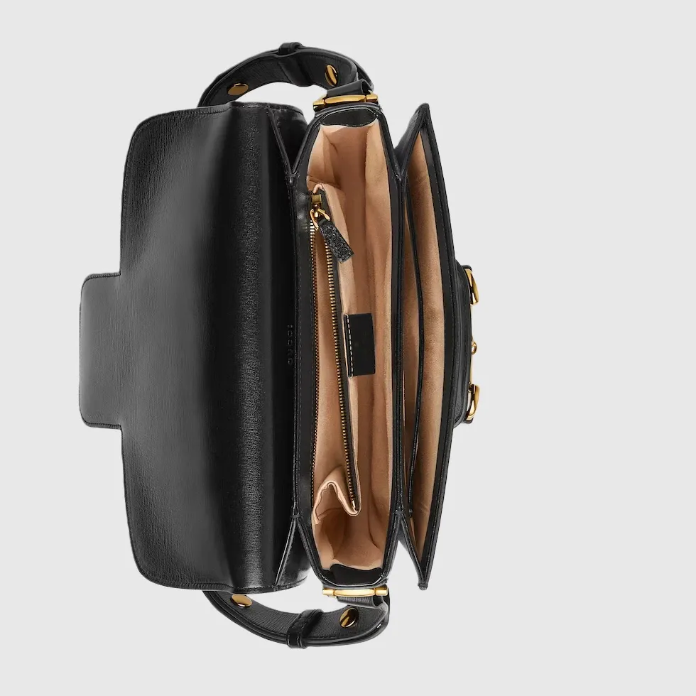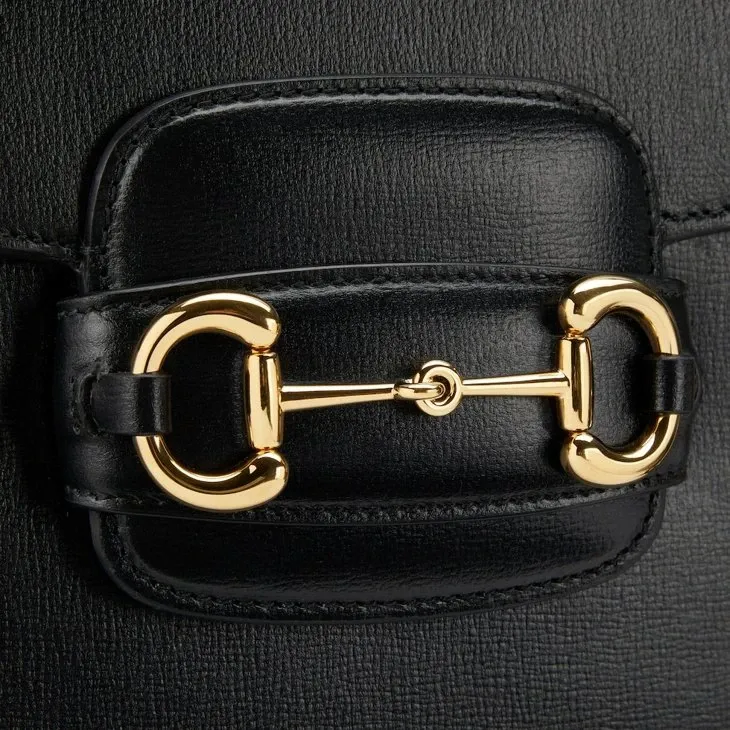Part of Gucci’s genetic code, the double ring and bar design has been established as one of the most distinctive elements among the House symbols borrowed from the equestrian world.Black textured leather with a vintage effect