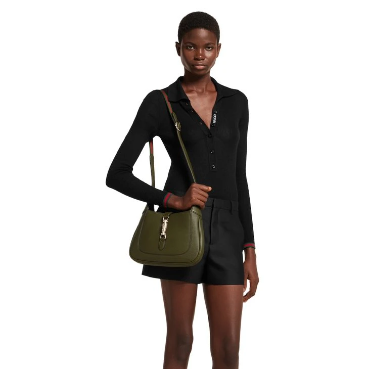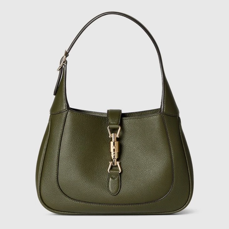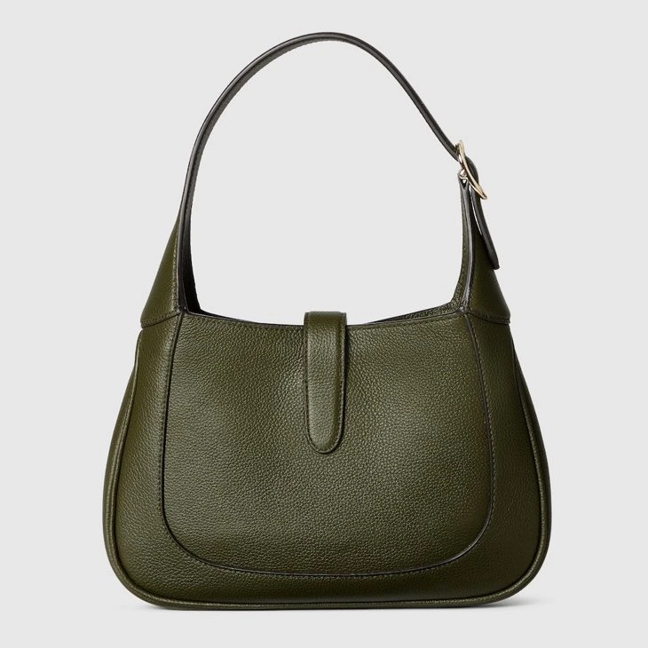 The Gucci Jackie 1961 with its signature piston closure and emblematic shape tells a story that spans eras. The shoulder bag exudes timeless elegance with a contemporary edge.Forest green natural grain leather