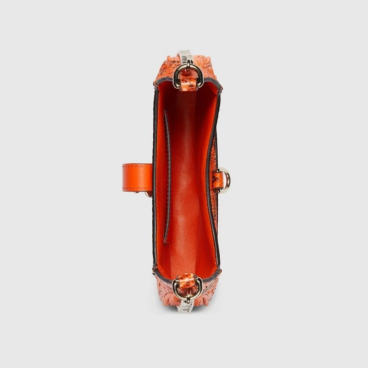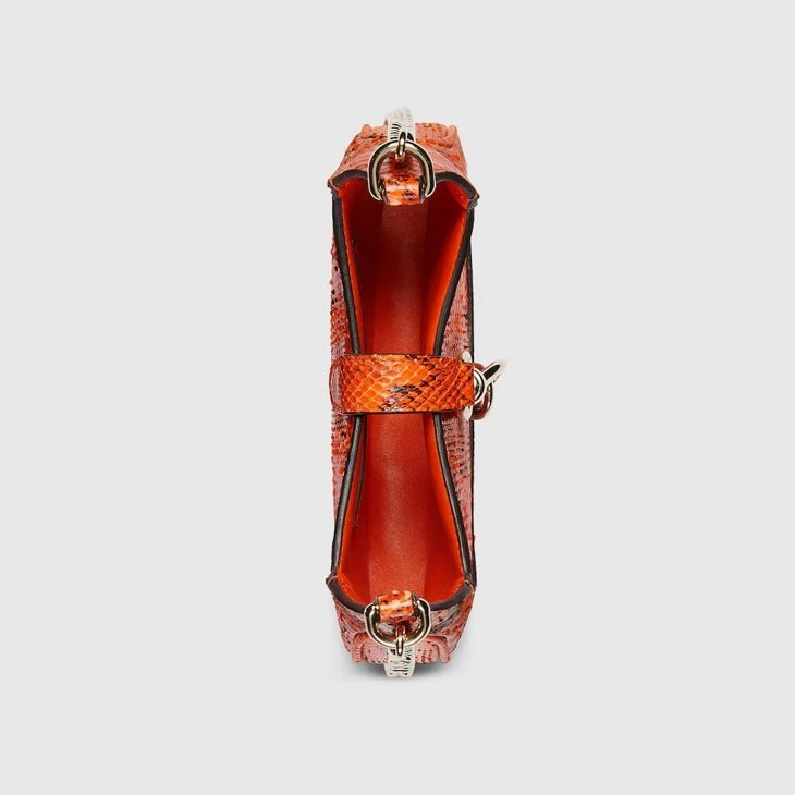 The Jackie Notte embodies the self-confidence of the iconic Jackie line, with a new silhouette and subtle details that make it perfect for nighttime wear. A hook closure and light gold-toned Gucci lettering chain strap give this Jackie Notte mini bag in orange python leather a unique touch.Orange python leather