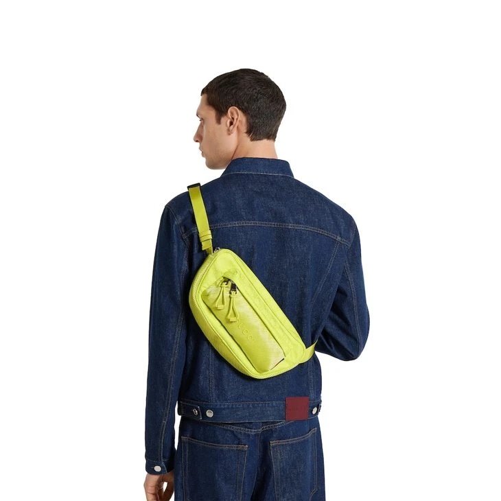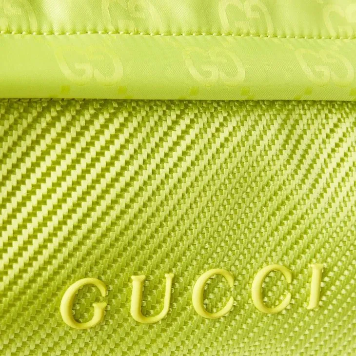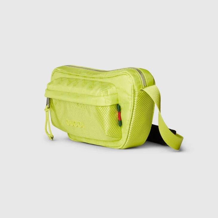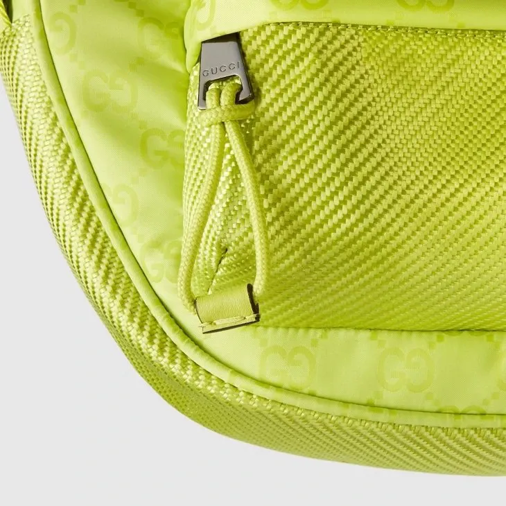 The lightweight and durable GG nylon material is re-introduced on new functions and bold shades. It appears here across a slingbag, defined by a green and red Web detail.Acid green GG nylon