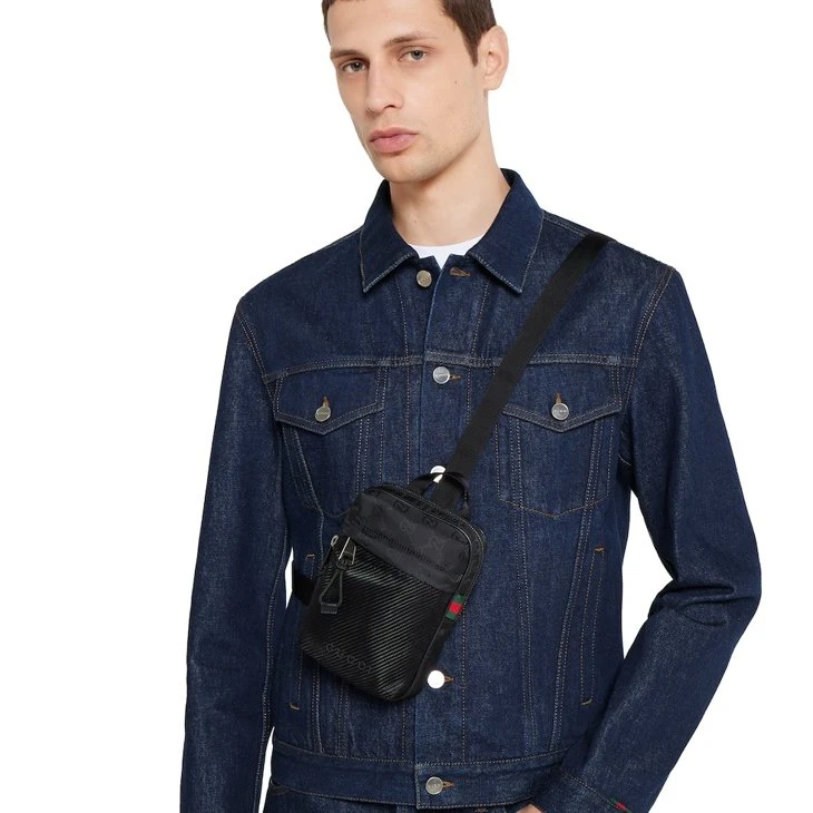 The lightweight and durable GG nylon material is re-introduced on new functions and bold shades. It appears here across with a tonal Gucci logo, defined by a green and red Web detail.Black GG nylon