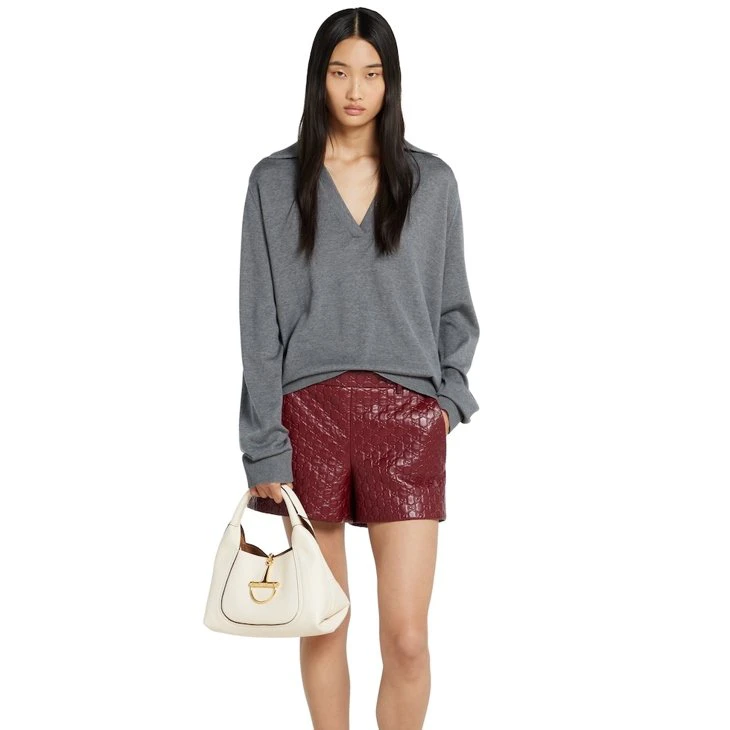 The new Gucci Softbit shoulder bag reimagines the House’s signature hardware as an oversized half Horsebit. It is both aesthetic and functional as the magnetic closure of the relaxed silhouette, crafted from supple, grainy leather with a rich texture. Available in two sizes.White grainy leather