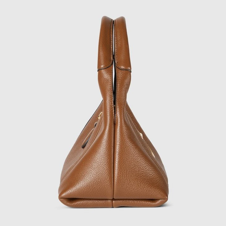 The new Gucci Softbit shoulder bag reimagines the House’s signature hardware as an oversized half Horsebit. It is both aesthetic and functional as the magnetic closure of the relaxed silhouette, crafted from supple, grainy leather with a rich texture. Available in two sizes.Brown grainy leather