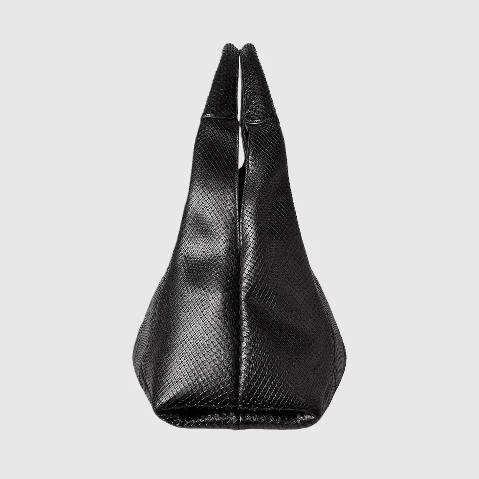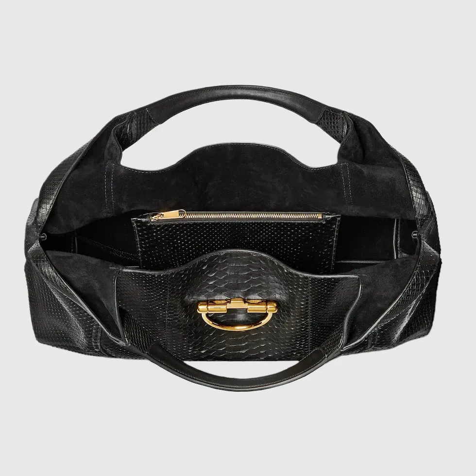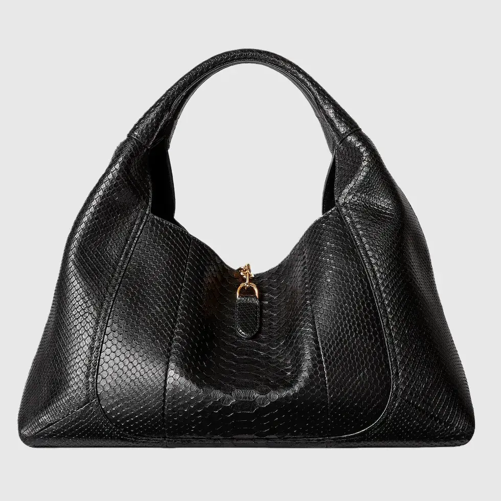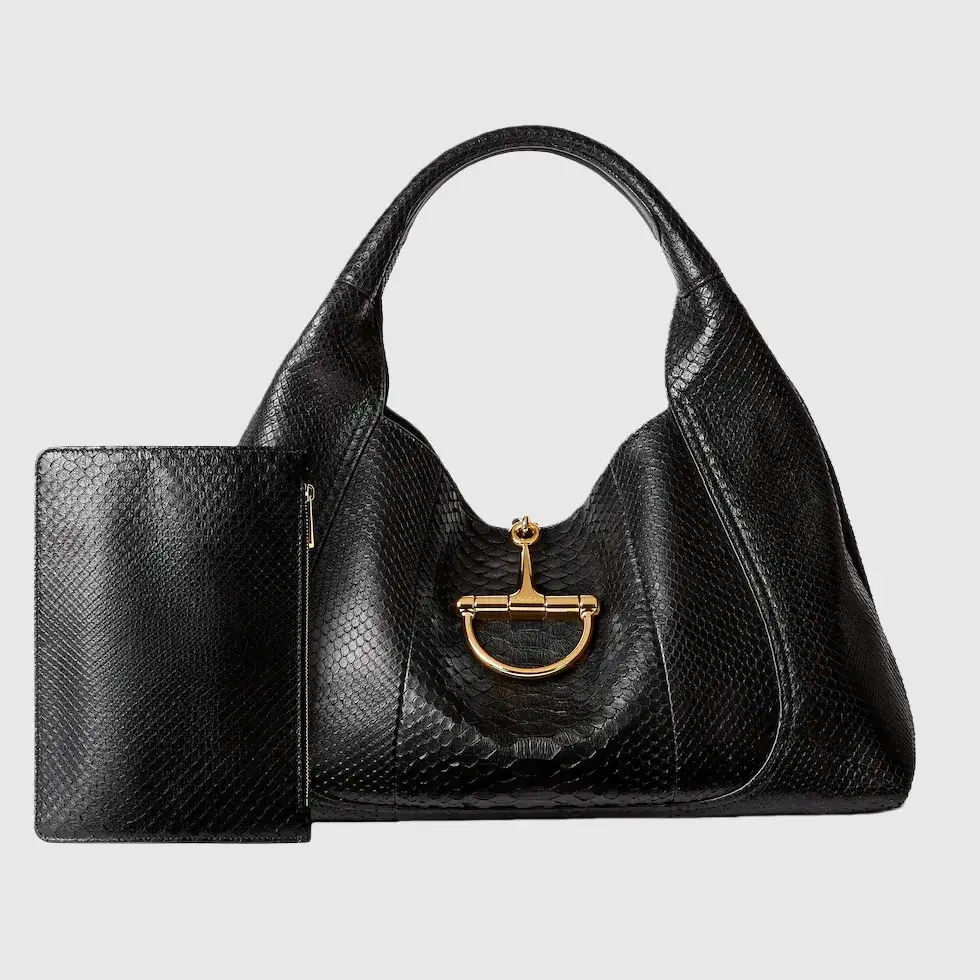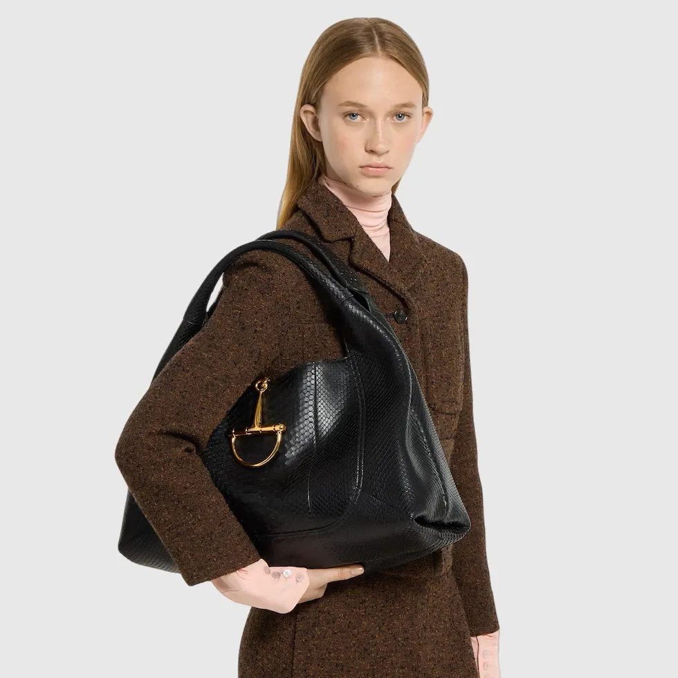 Super high-quality 1:1 replica bagIn the Fall Winter 2025 collection, the Gucci Softbit shoulder bag reimagines the House’s signature hardware as an oversized half Horsebit. It is both aesthetic and functional as the magnetic closure of the relaxed silhouette, crafted from python with leather lining.Black python