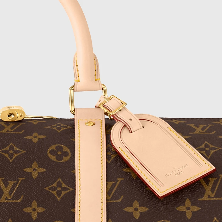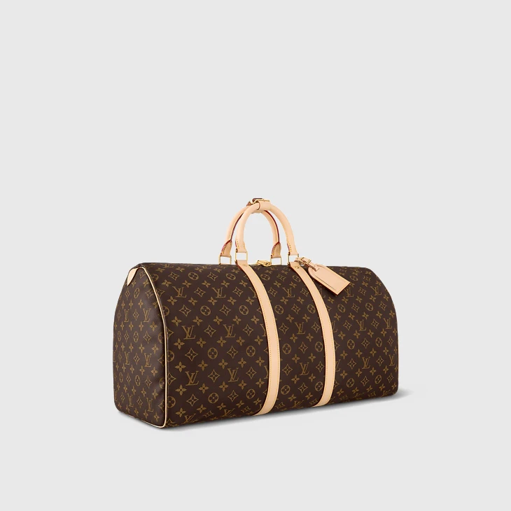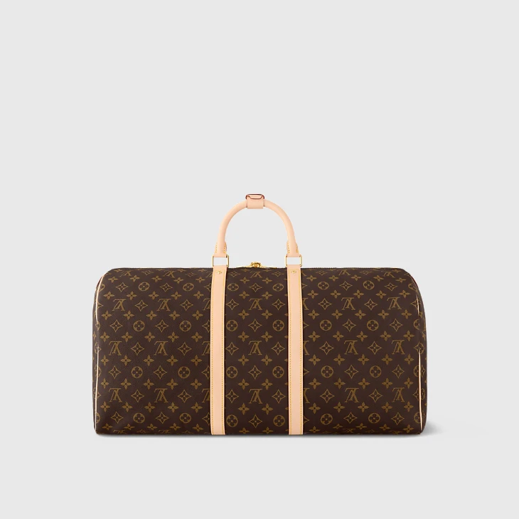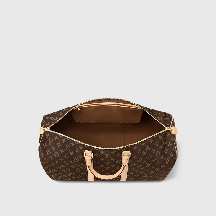 The Keepall is a classic of the Louis Vuitton travel bag collection. This spacious medium-sized version in Monogram canvas features comfortable rounded leather handles and a double zipper.