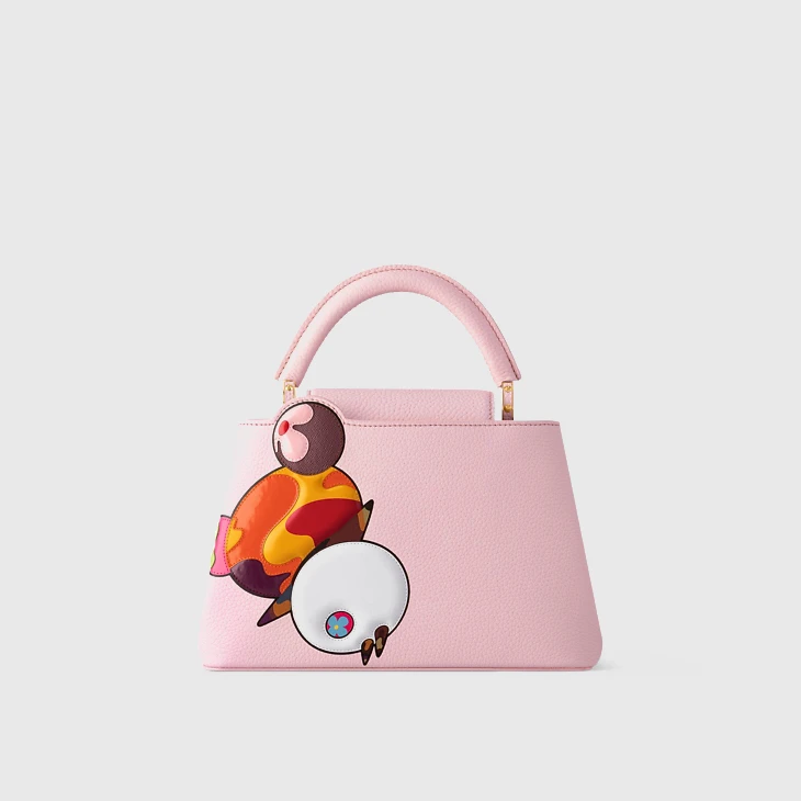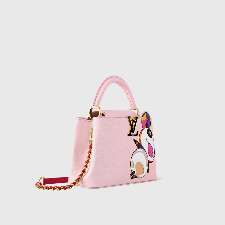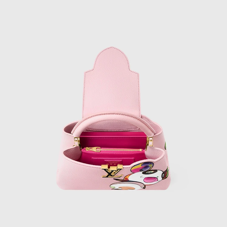 The House’s classic Capucines BB handbag is vibrantly reimagined with the joyful aesthetic of world-renowned Japanese artist Takashi Murakami. Crafted from Taurillon leather, the soft pink outside is accented by a hot-pink cowhide lining and braided strap, while the front and back are embellished with an oversized Panda character in the artist’s superflat style. Black LV Initials complete the look with a graphic signature.