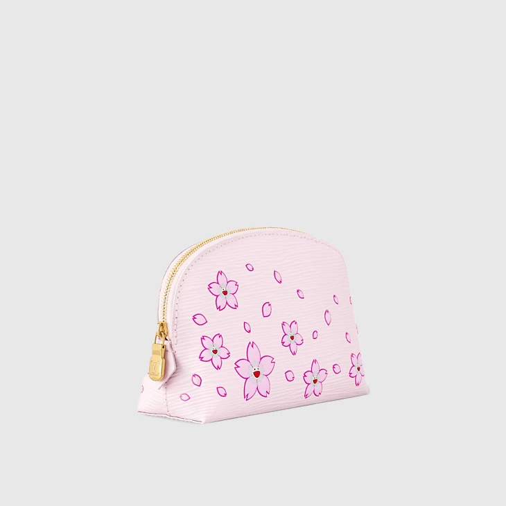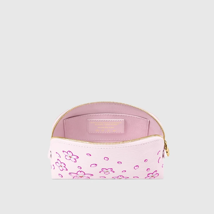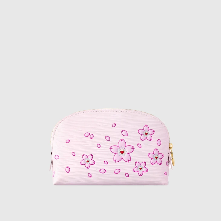 This essential Cosmetic Pouch PM is playfully uplifted as part of the re-edition of the coveted Louis Vuitton x Takashi Murakami collection. It is crafted in compact proportions from the House’s signature Epi grained leather in a fresh shade of pink, while the Japanese artist’s cheerful Cherry Blossom motifs introduce a bold allover statement, symbolizing renewal. A gleaming golden zipper fastening keeps personal items secure, while a washable microfiber lining enhances the practicality.