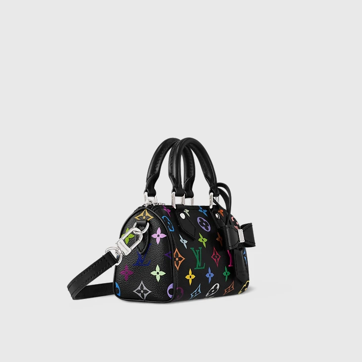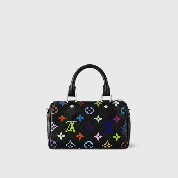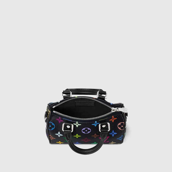 The scaled-down Nano Speedy makes a playful statement in Monogram coated canvas, which has been reworked in upbeat tones as part of the re-edition of the Louis Vuitton x Murakami collection. Natural cowhide leather trims add a timeless touch, as do two Toron top handles and a gleaming golden padlock in homage to the House’s travel heritage. Complete with a removable, adjustable strap and an exclusive LV x TM keybell.