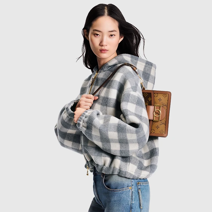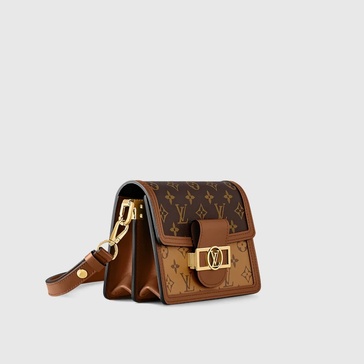 For Spring-Summer 2019 Nicolas Ghesquière unveils a new must-have: the Dauphine Mini handbag. This adorably compact model is crafted from Monogram and Monogram Reverse canvas, trimmed with cowhide-leather. The high-shine LV lock and leather smart strap add a modern twist to this signature piece, which is perfectly sized for day-to-evening wear.